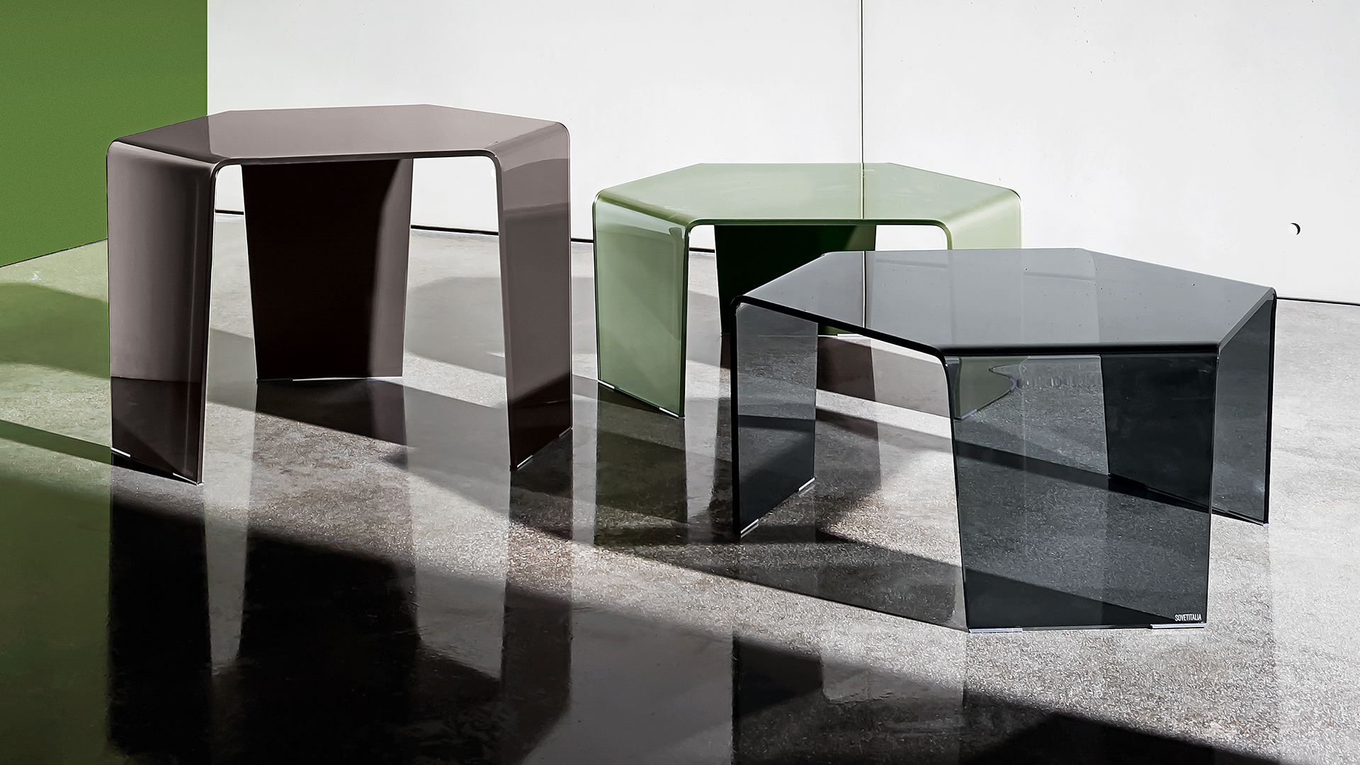 Журнальный столик Sovet Italia 3 Feet дизайнера Gianluigi Landoni обладает особой харизмой. Его шестиугольная столешница плавно переходит в три ножки.