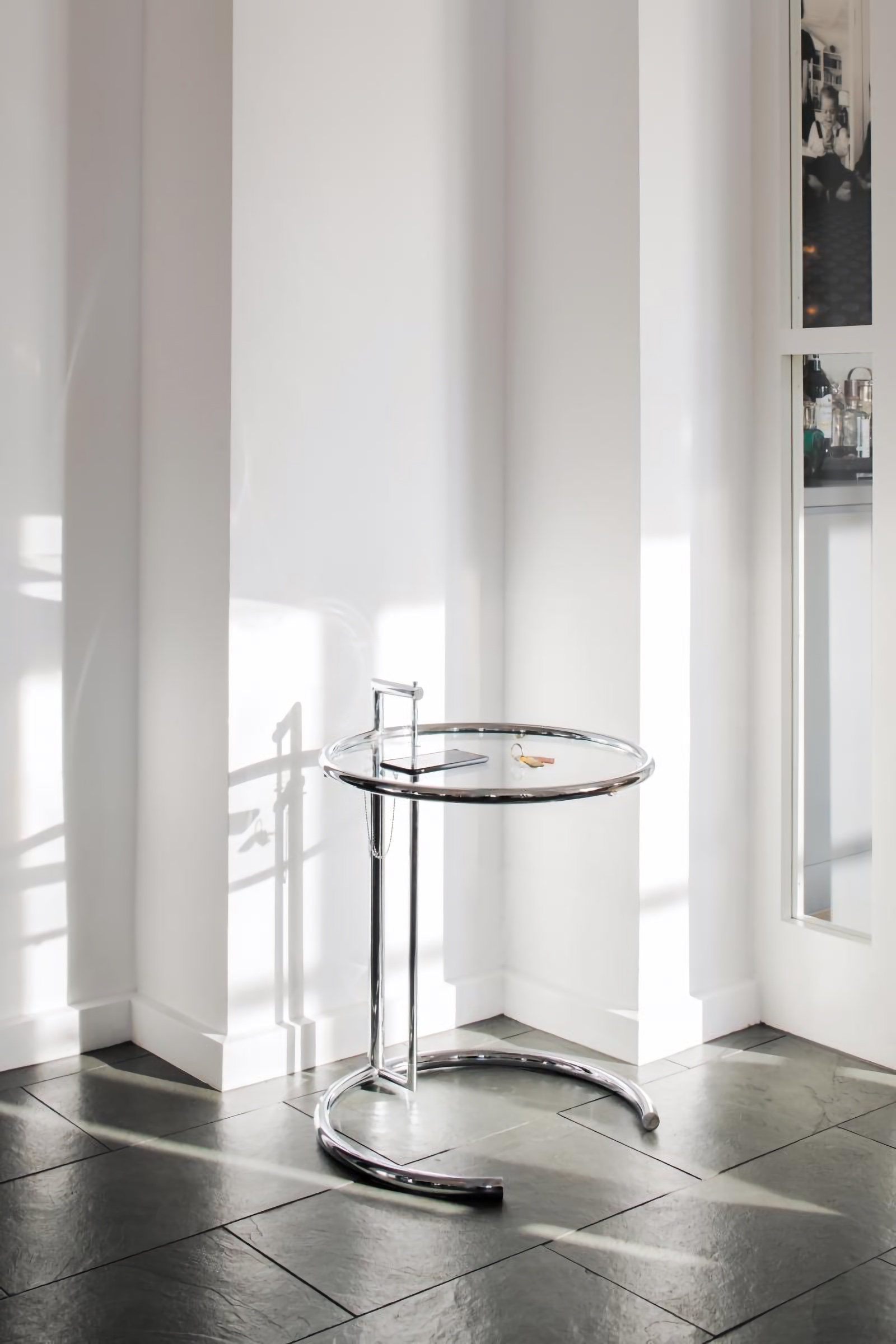 Журнальный столик ClassiCon Adjustable Table — узнаваемая классика, созданная Eileen Gray. Лаконичная модель выполнена в стиле функционального модернизма. Полированная блестящая ножка и прозрачное стекло придают столику невесомую элегантность. Главное преимущество модели — возможность регулировать высоту, подстраивая Adjustable Table под параметры дивана или кресла.