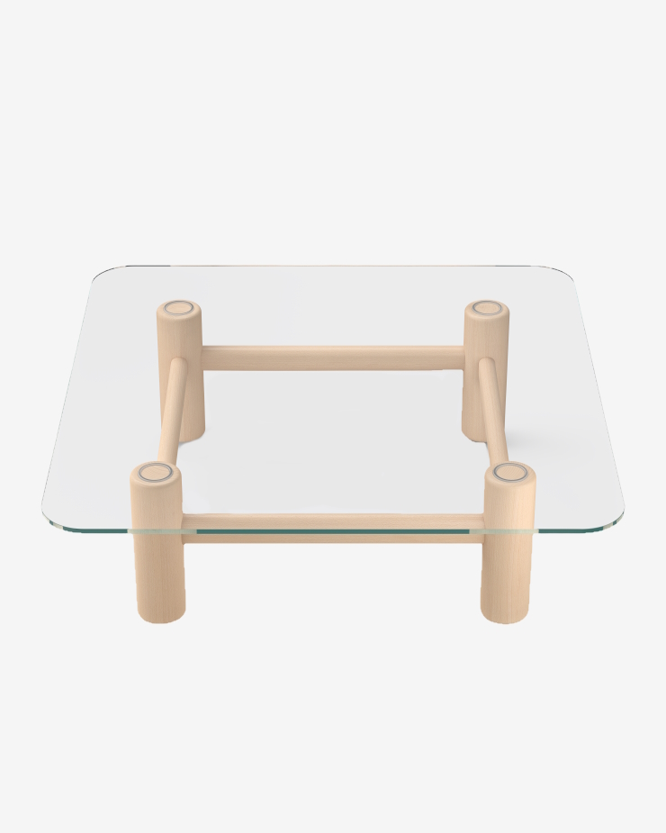 Рама журнального столика Mass production Boundary Table Square выполнена из бука или ясеня. Столешница — стекло.