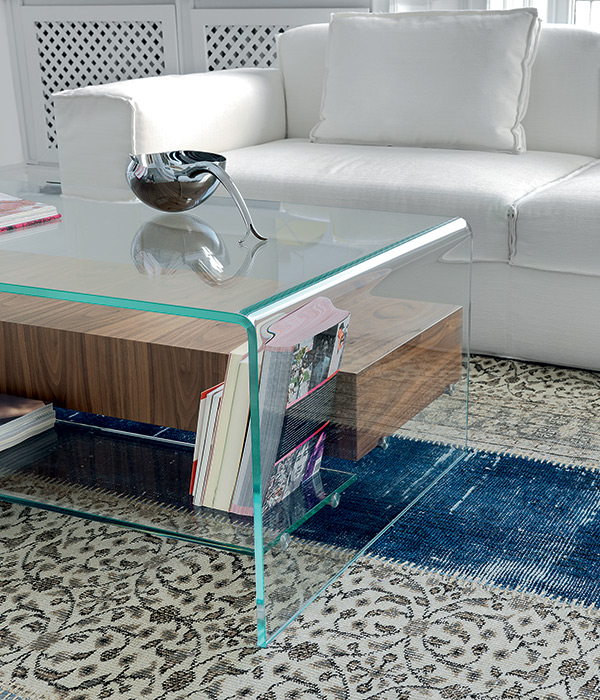 Журнальный столик Sovet Italia Bridge with drawer and shelf выполнен из гнутого стекла. Уникальными деталями являются стеклянная полка и ящик из орехового дерева. Изящный и функциональный столик впишется в любой современный интерьер.