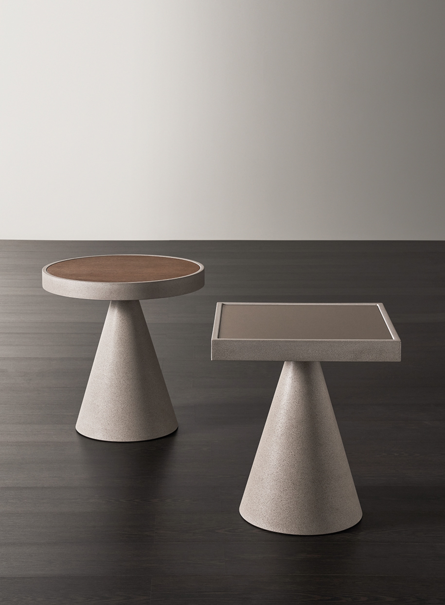 Журнальный столик Meridiani Cone – это конусообразный предмет интерьера, основание которого сделано из бетонированного материала премиального качества. Миниатюрная столешница квадратной или круглой формы доступна как в матовом так и в глянцевом лакированном покрытии. Подробнее ознакомиться со всем каталогом доступных отделок и цветов можно во вкладке КАРТА ОТДЕЛОК.
