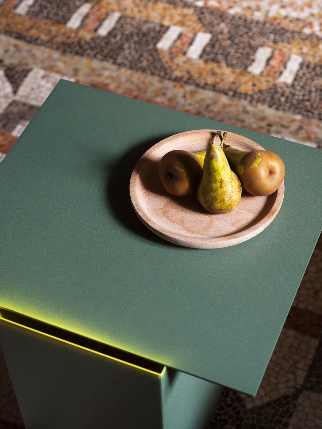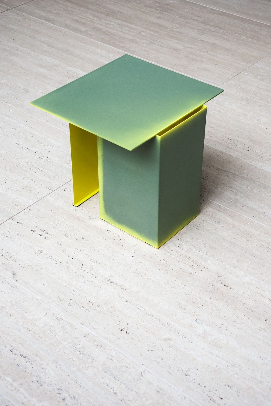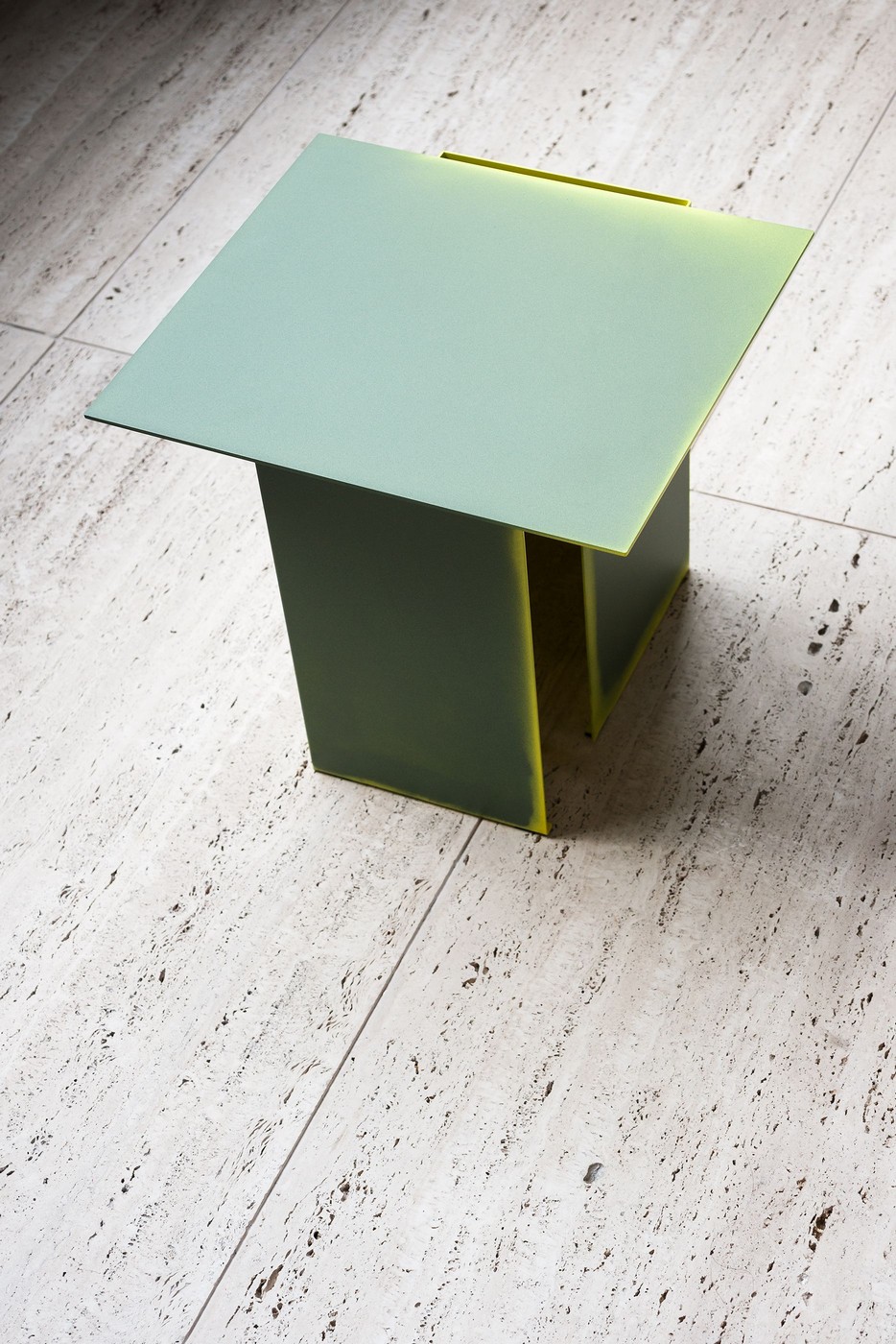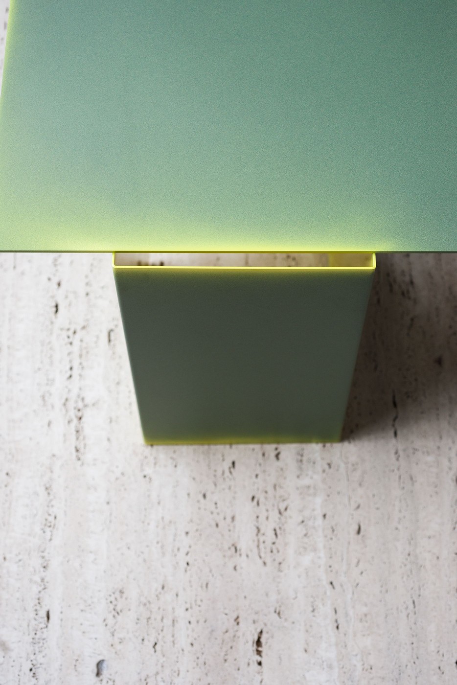 Журнальный столик Tacchini Daze от Truly Truly — брутальная модель из металла с градиентной окраской элементов. Столешница квадратной или прямоугольной формы на массивных боковых панелях. Внутренние поверхности выделены контрастным цветом.