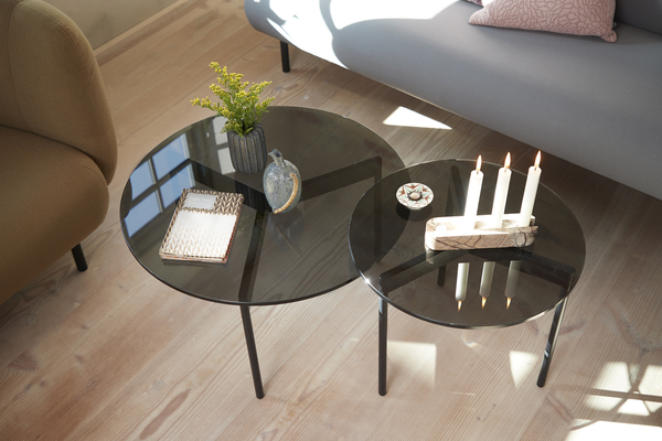 Журнальный столик Warm Nordic From Above Table — это изящный предмет интерьера со стеклянной столешницей и каркасом из цветной стали. Прозрачная столешница подчёркивает стройный силуэт столика. Изделие поставляется в двух размерах. Ножки в тщательно подобранных тёплых скандинавских оттенках прекрасно сочетаются с дымчатым стеклом столешницы.