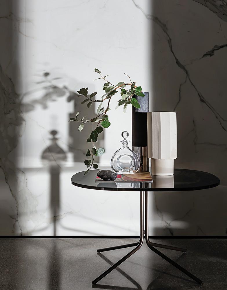 Журнальный столик Sovet Italia Genius выполнен в современном стиле дизайнером Gianluigi Landoni. Тонкие металлические ножки, расходящиеся внизу, создают изящный силуэт. Он прекрасно сочетается с любым сиденьем благодаря своей яркой индивидуальности.