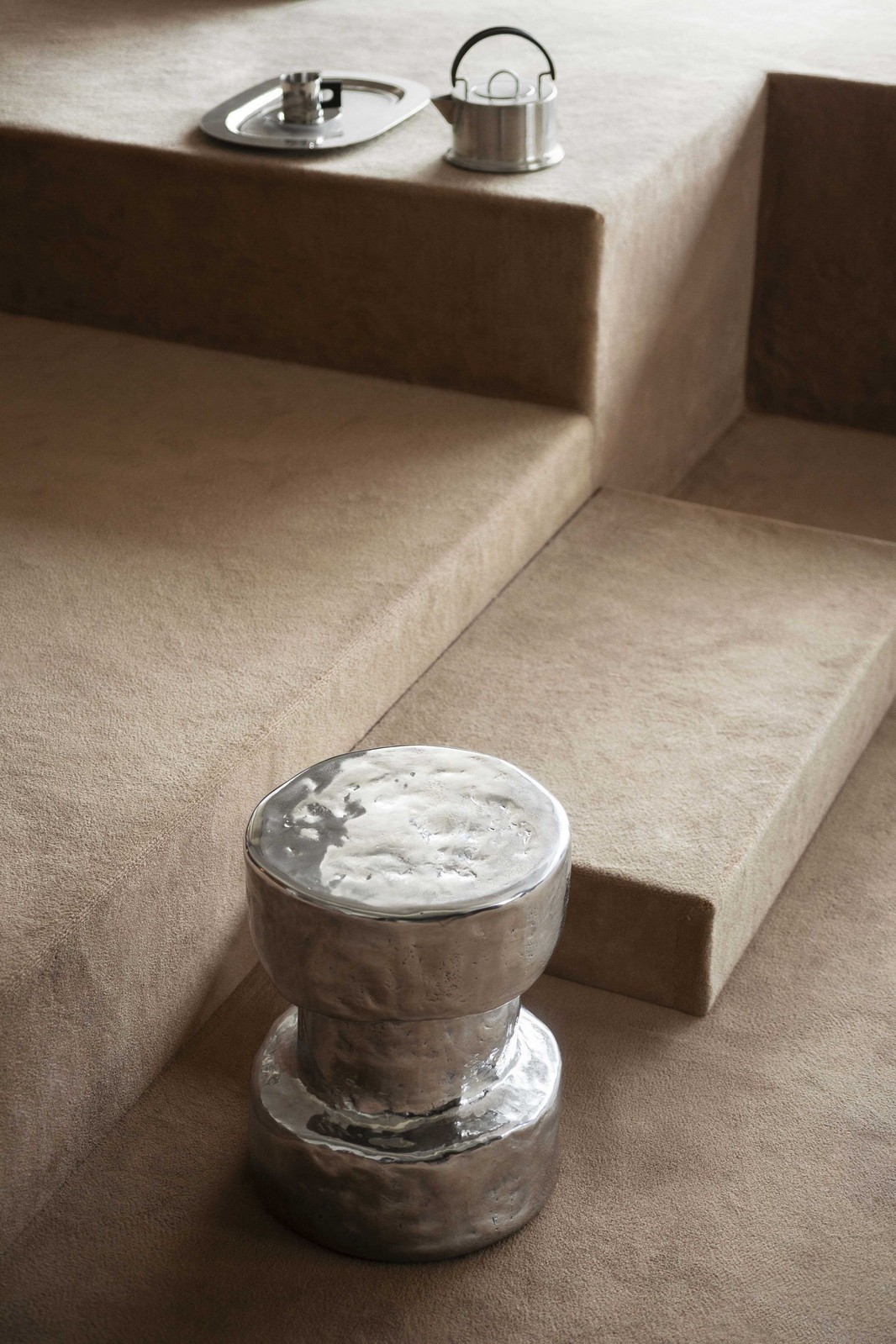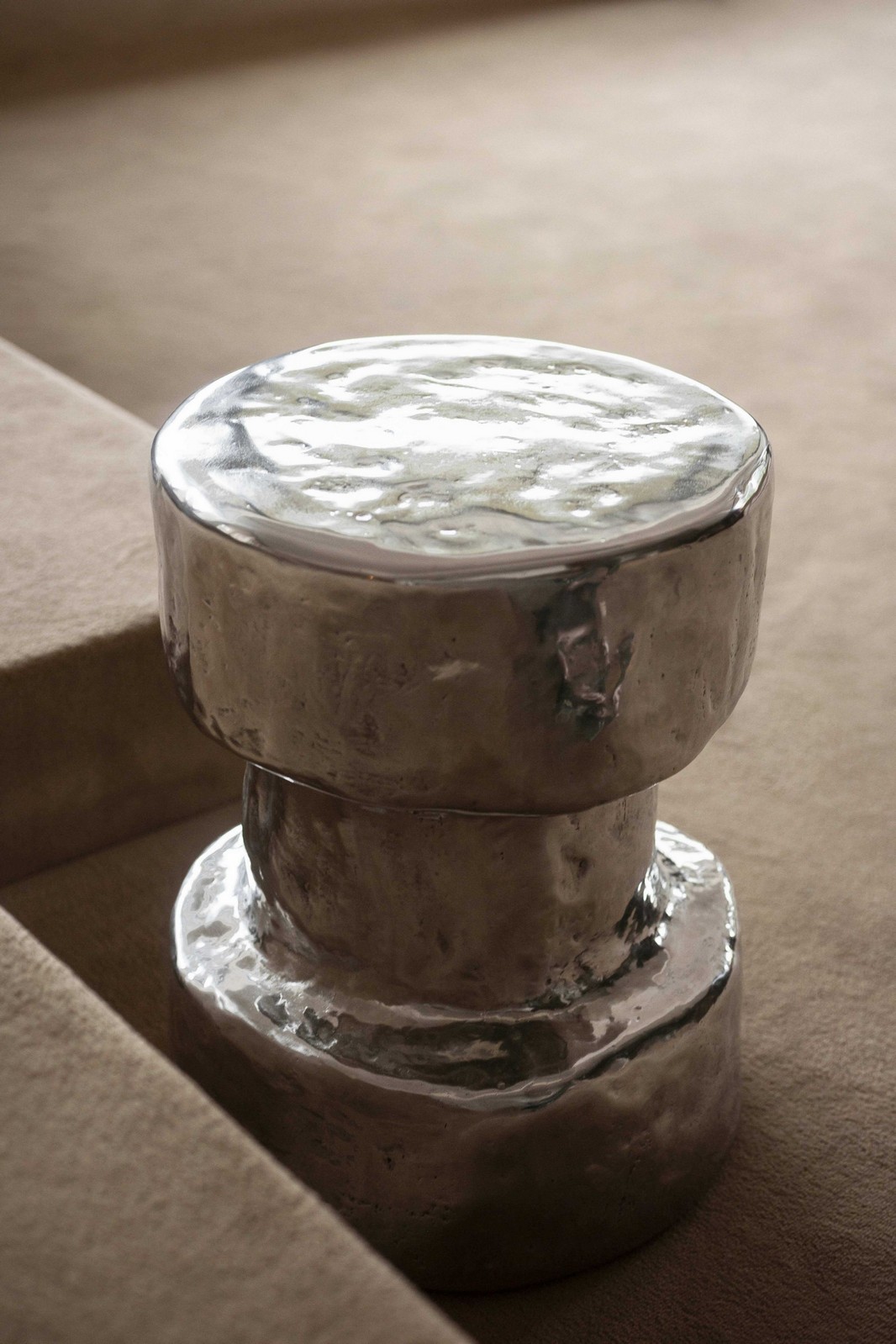 Журнальный столик Tacchini Torso от Roberto Sironi — объект с текучими металлическими формами. Три округлых элемента плавно соединены между собой. Поверхность имеет зеркальную полировку с естественными текстурными неровностями.