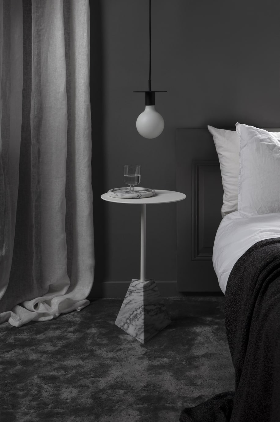 Основа журнального столика Knockout выполнена из мрамора с сатиновой отделкой. Также основу можно сделать из травертина. Ножка и столешница алюминиевые с порошковым покрытием. Устойчив к ультрафиолету.