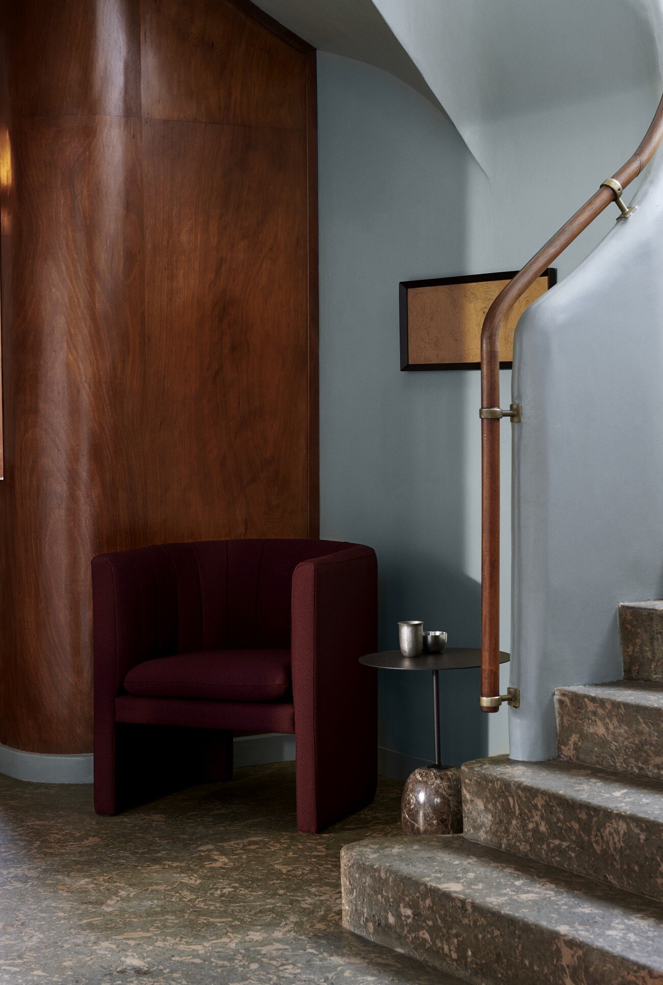 Мрамор, сталь, шпон дерева.