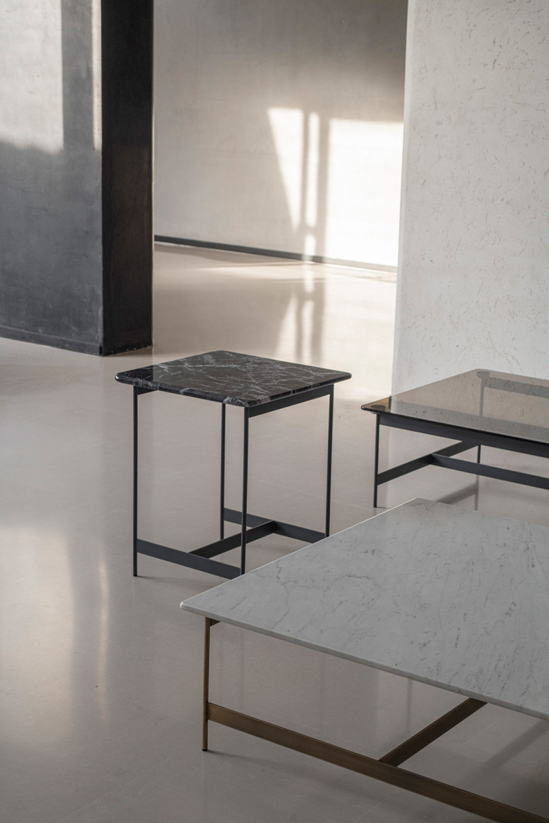 Журнальный столик Potocco Little T от Potocco D&D — высокая модель с квадратной столешницей. Четыре прямые ножки квадратного сечения соединены перемычками. Металлическое основание с гладкой поверхностью.