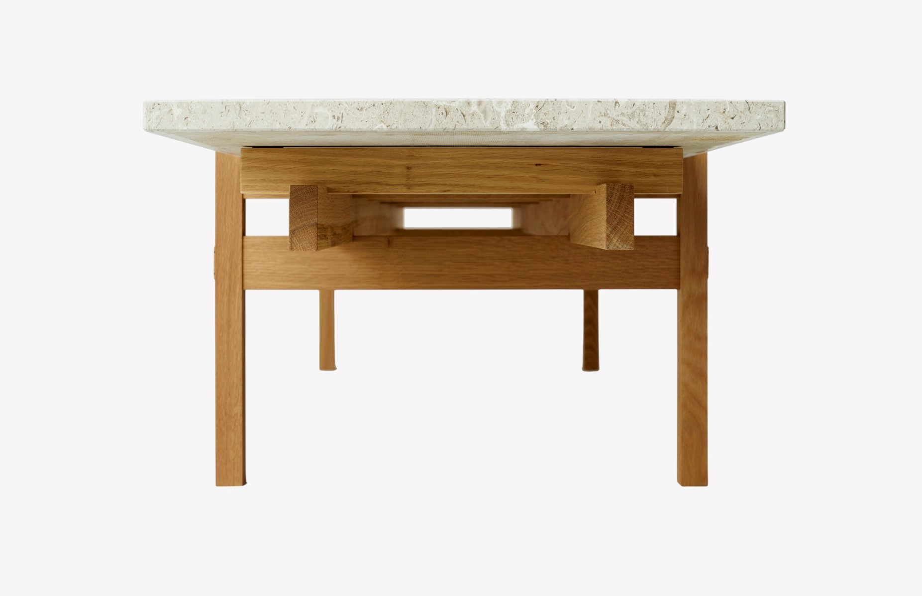 Журнальный столик Karimoku N-CT01 имеет очень воздушную, хоть и сложную, конструкцию, отсылающую нас к традиционной храмовой архитектуре Японии. Между каждым элементом есть расстояние, что позволяет свету проходить сквозь него и создавать лучистый, живой и умиротворяющий элемент интерьера.