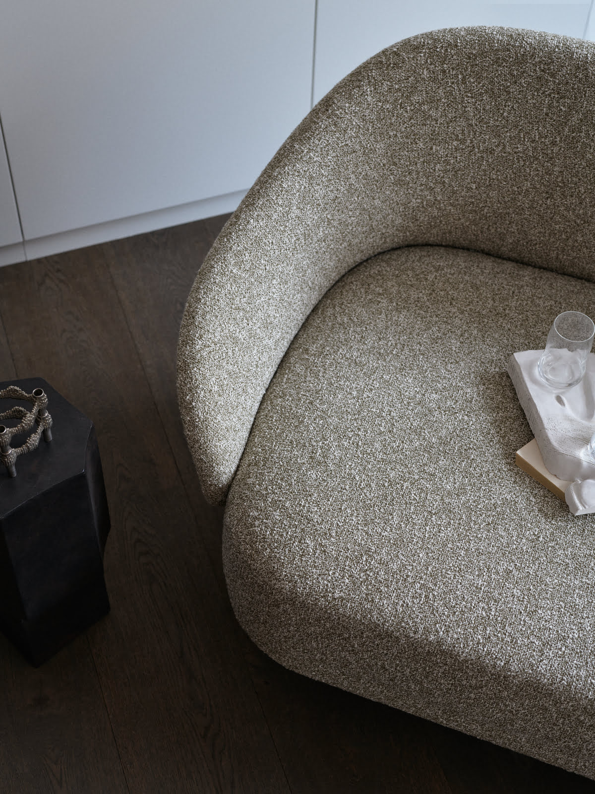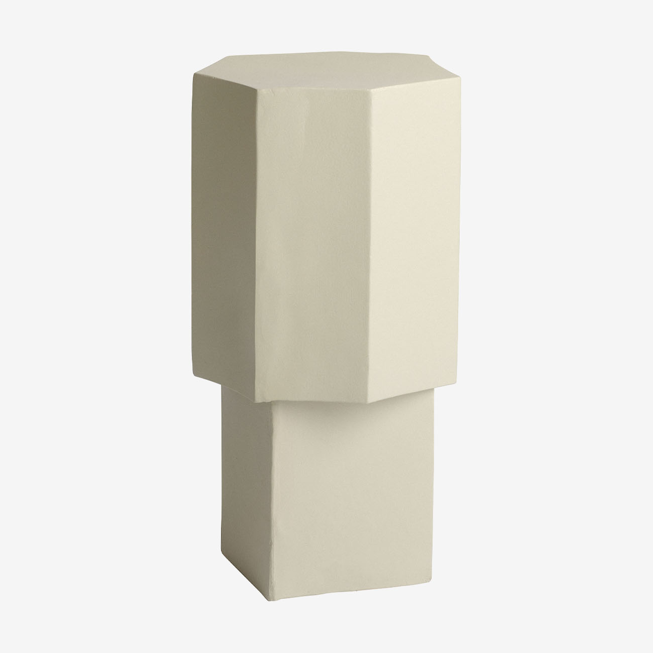 Объект отлит из легкого фибробетона, который имеет уникальную тактильную текстуру и поверхность мелового цвета.