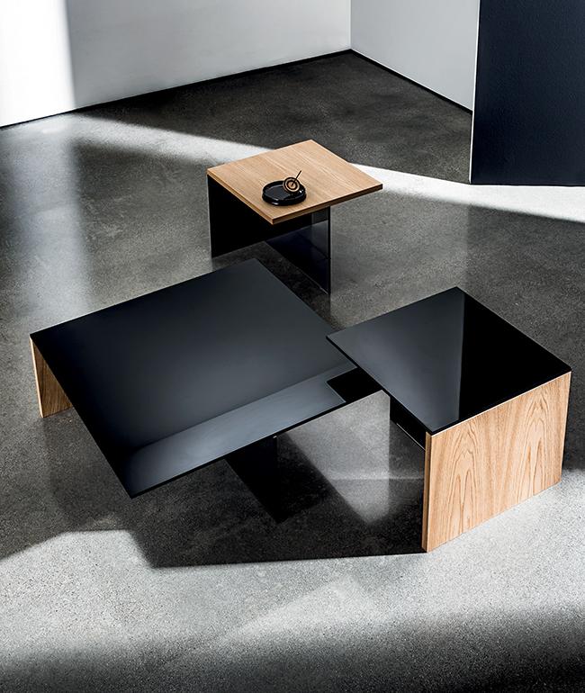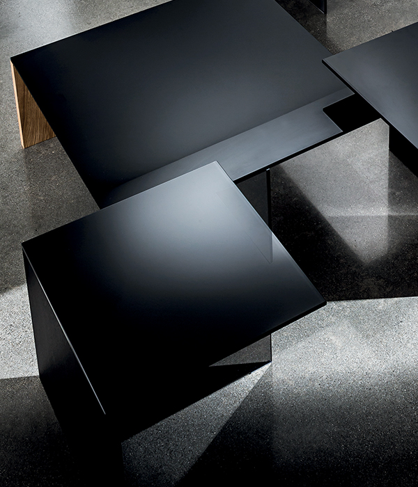 В версии со стеклянной столешницей основание выполнено из дымчатого стекла и дерева. В версии с деревянной столешницей основание выполнено из дымчатого стекла и черного многослойного стекла. Для ознакомления с полным списком отделок смотрите "Карту отделок".
