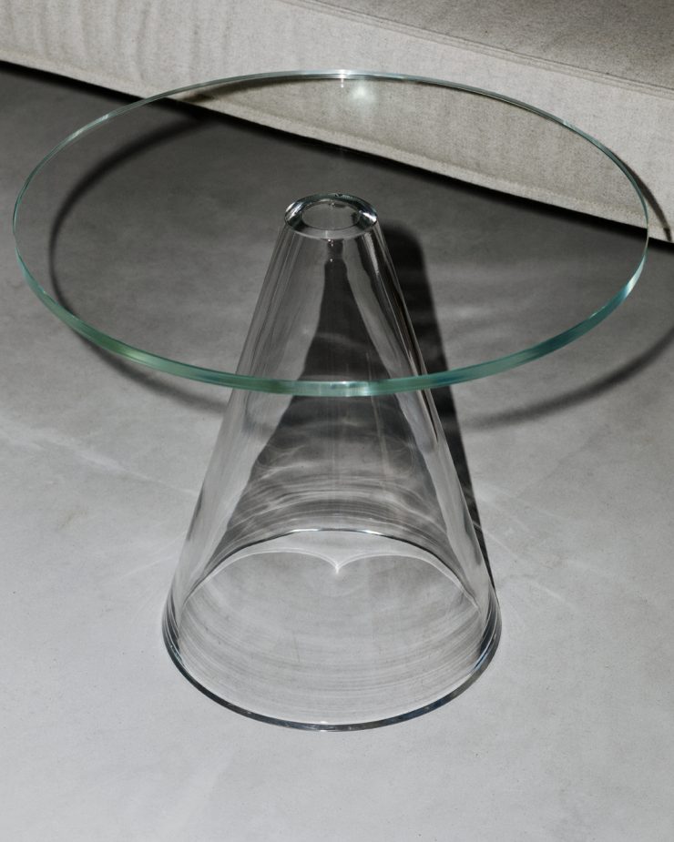 Шведские традиции стеклоделия сочетаются с высокими технологиями в изысканном журнальном столике Sander Table Massproduction от Massproduction. Предмет интерьера состоит из выдувного конического основания, прикреплённого к столешнице из закалённого стекла.