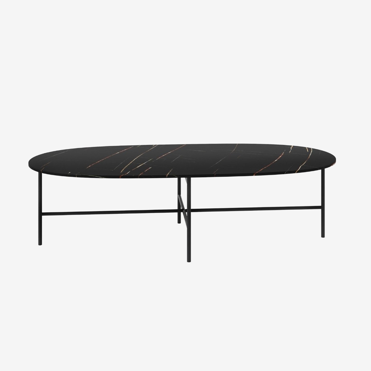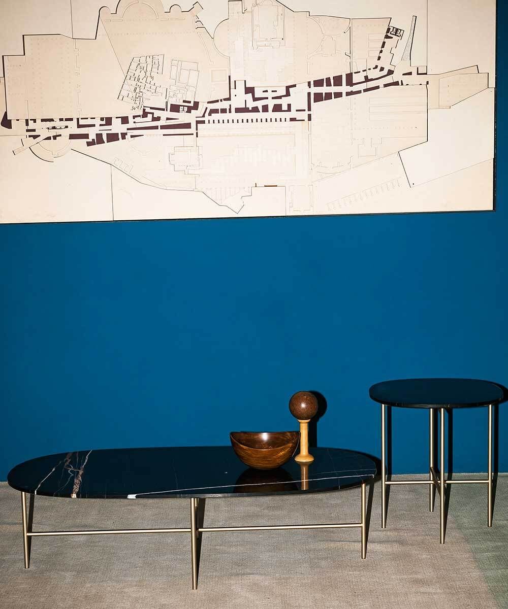 Журнальный столик Tacchini Soap от Gordon Guillaumier с мраморной столешницей с мягко скруглёнными углами. Четыре тонкие металлические ножки образуют лёгкий каркас. Две перекладины крестообразно соединяют основание.