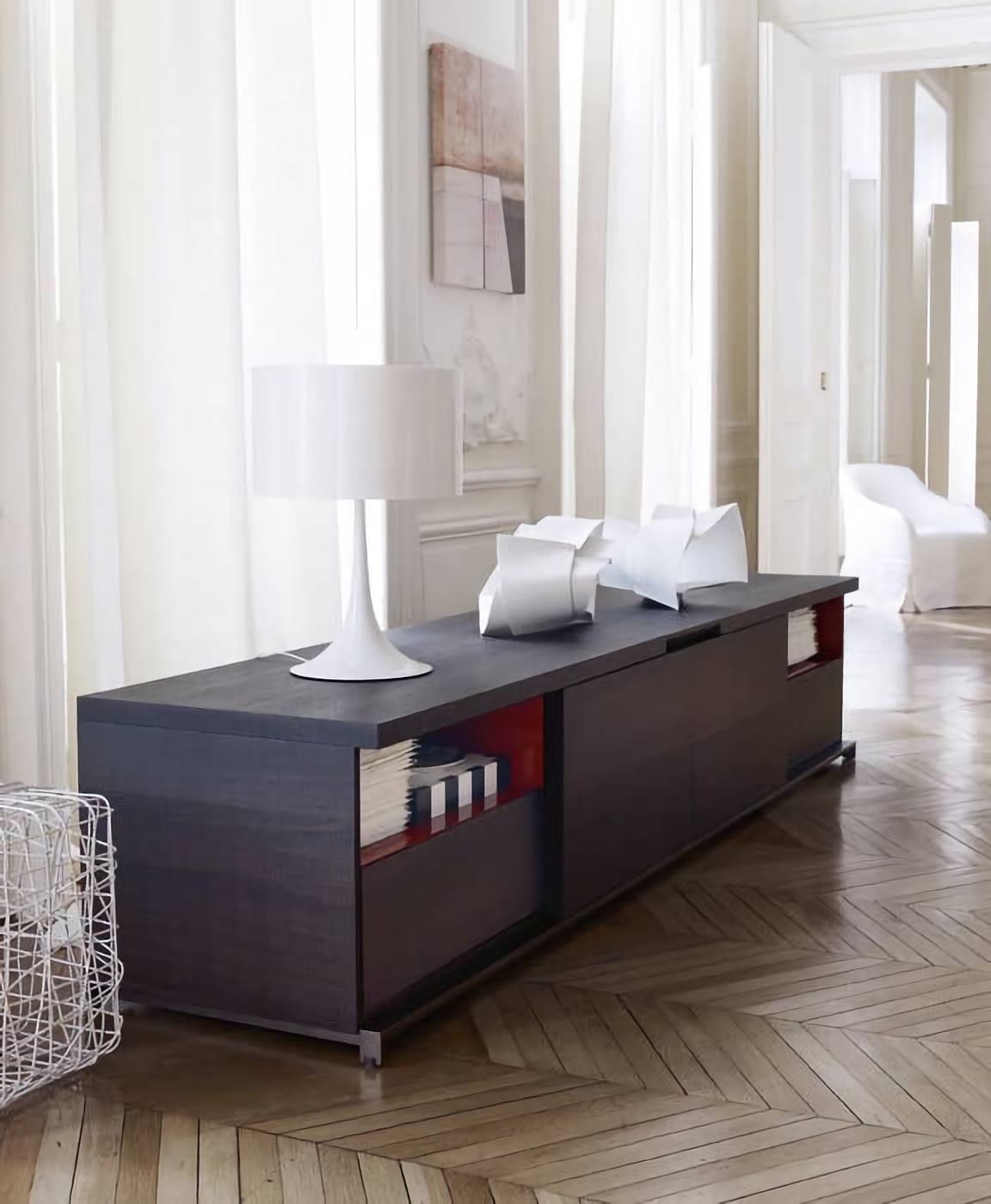 Тумба под ТВ Maxalto Mida доступна в различных вариантах отделки. За подробностями можно обратиться к менеджерам Laboratory Dome.