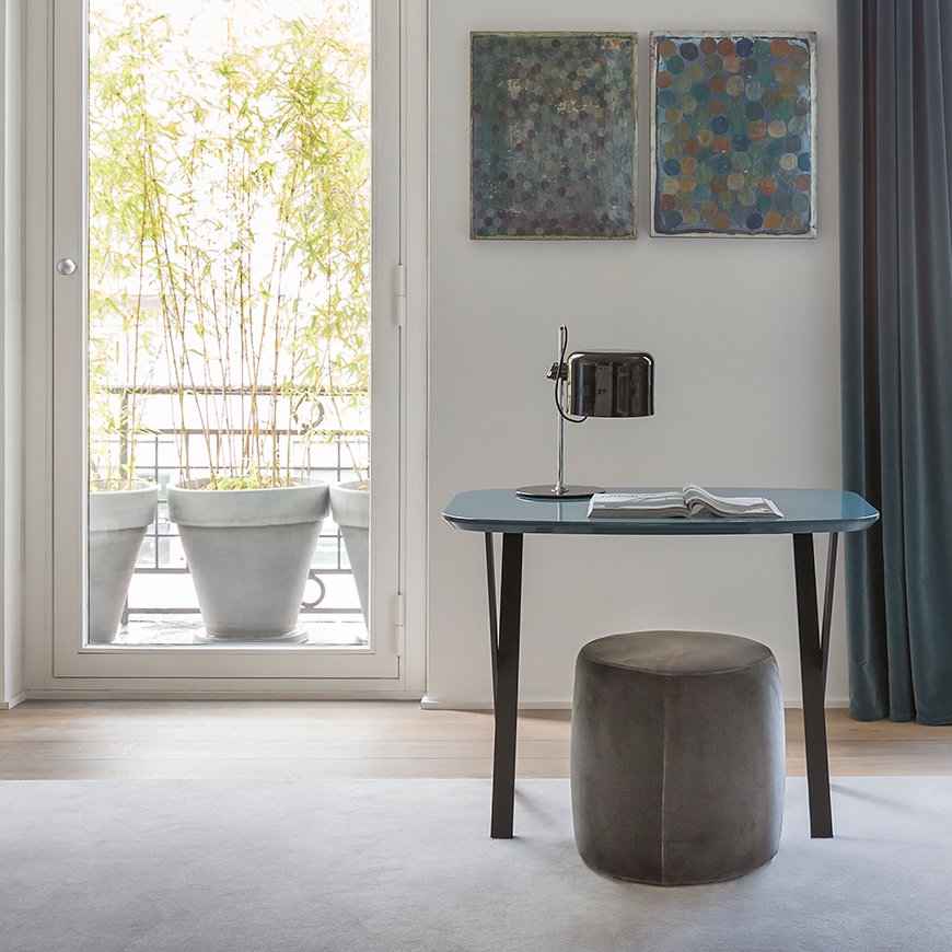 Рабочий стол Meridiani Burt – это компактный предмет мебели, который может идеально вписаться в небольшое пространство как в частном доме, так и в офисе. Несмотря на визуальную простоту и монохромный дизайн, он предлагает множество отделочных решений, которые прекрасно дополняют его скромную элегантность. Подробнее ознакомиться с доступными отделками столешницы и основания можно во вкладке КАРТА ОТДЕЛОК.