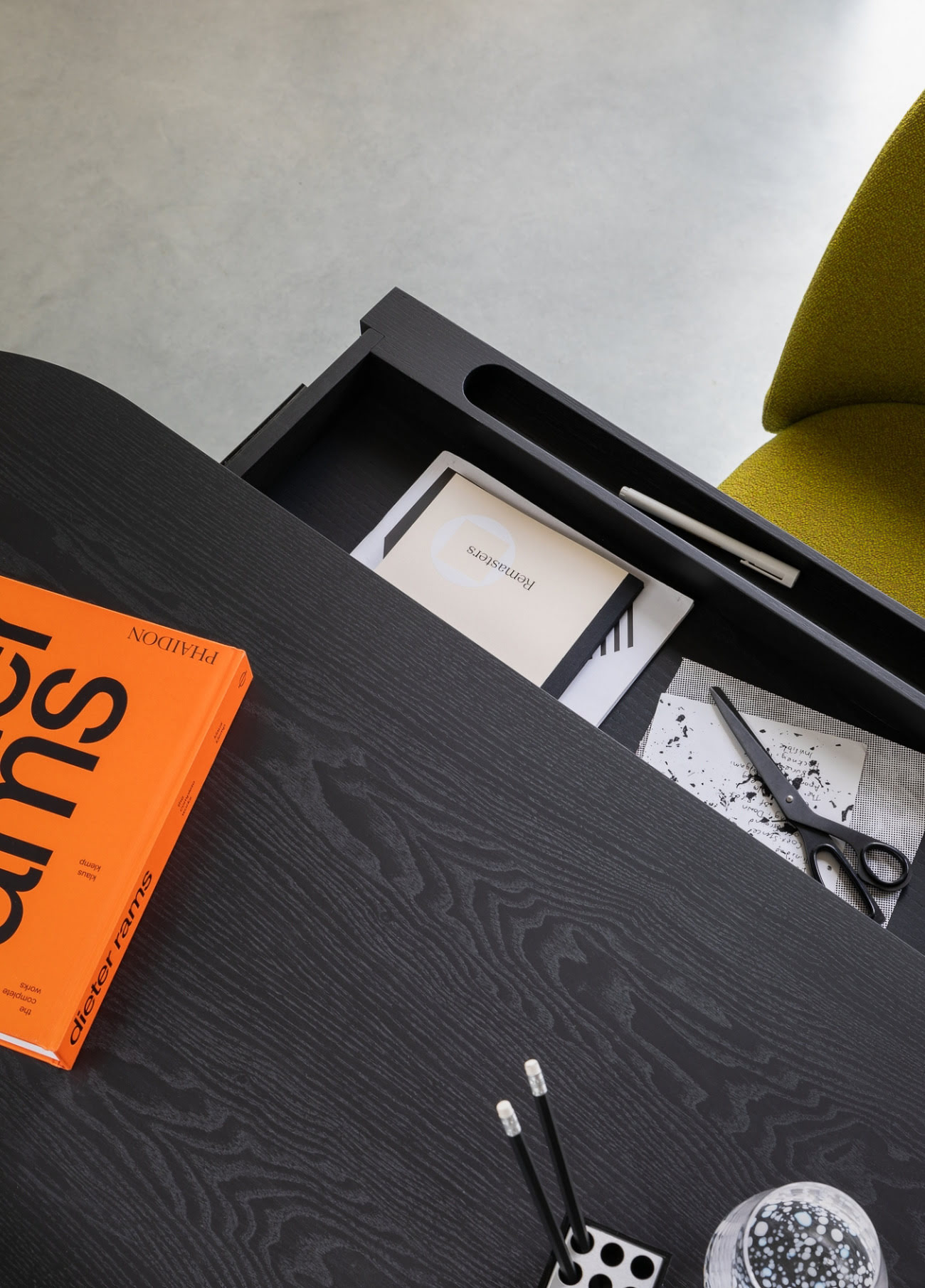 Стол Miniforms Jumbo — это солидный предмет интерьера, разработанный для размещения в домашнем офисе или спальне с ограниченным пространством. Металлическая полоса охватывает верхнюю часть, увеличивая её объём. Jumbo также имеет небольшой ящик для дополнительного места хранения.