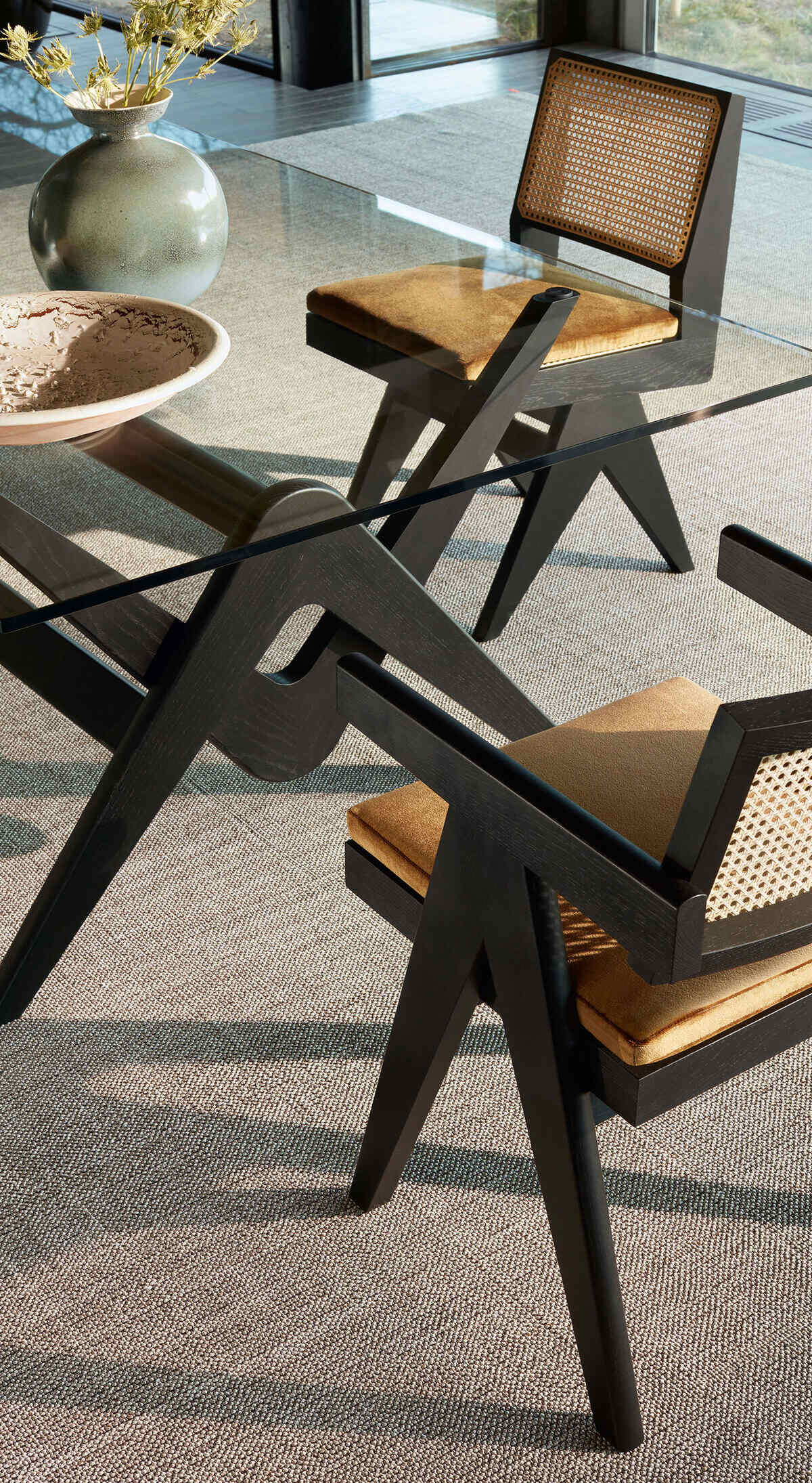Каркас стула Cassina Capitol Complex Office Chair изготовлен из массива дуба или тика. Обивка — ткань, кожа. В качестве наполнителя используется пенополиуретан. Спинка и сиденье выполнены из венского тростника.