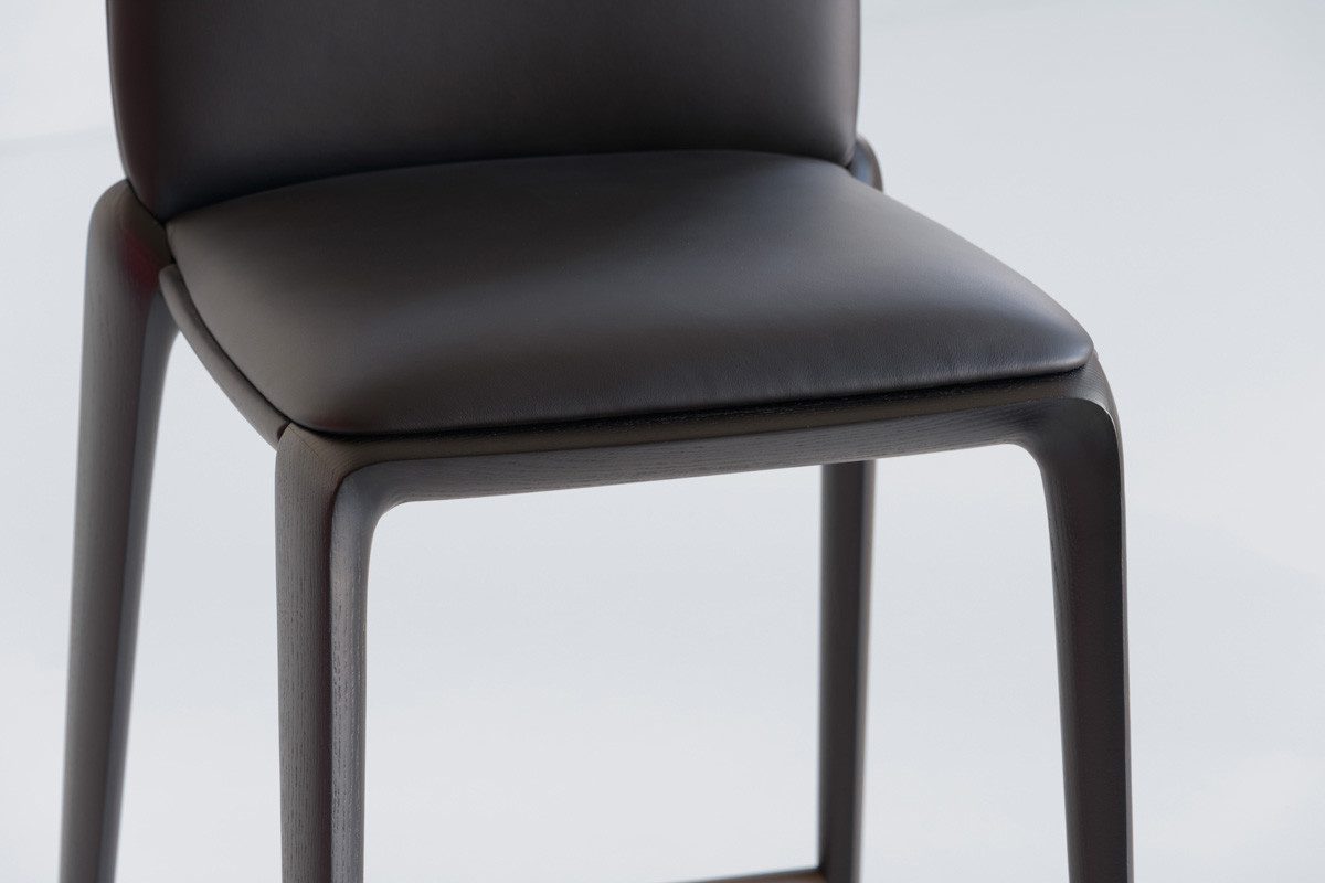 Барный стул Potocco Hiru от Mario Ferrarini — модель с квадратным сиденьем и низкой прямоугольной спинкой. Все углы плавно закруглены. Четыре прямые ножки соединены металлическими планками-подножками. Спинка слегка наклонена назад. Доступен в барной и полубарной высоте.