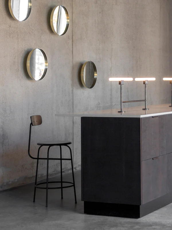 Полубарный стул Menu Afteroom Counter Chair — один из самых известных предметов мебели в коллекции Afteroom Studio. Точные контуры и необычная спинка привносят особую изюминку внешнему виду, обеспечивая при этом дополнительный комфорт при посадке. Сиденье доступно в отделке натуральной кожи либо окрашенном МДФ.