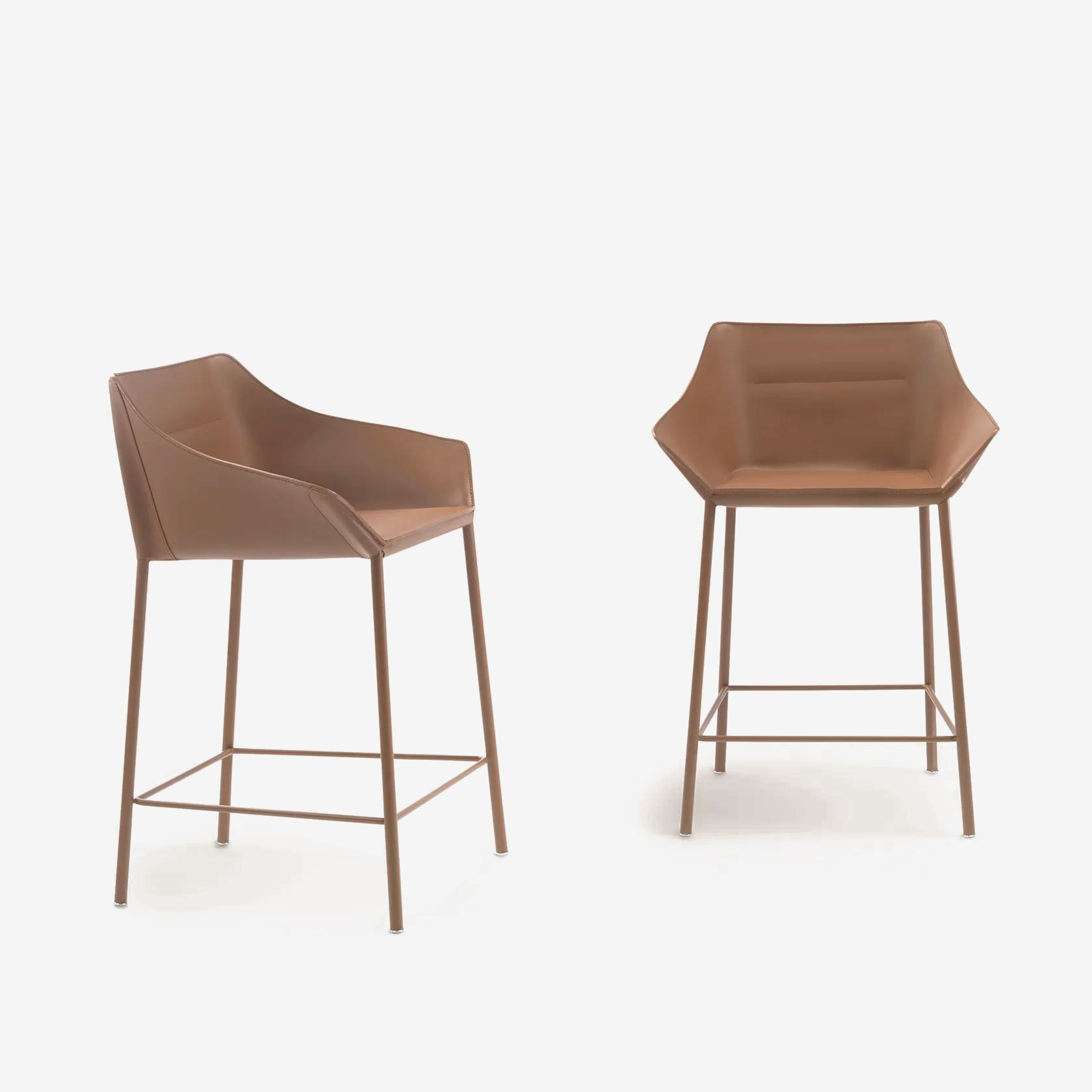 Металл / Кожа / С подлокотниками / Со спинкой / Полубарные (65 см) / На ножках