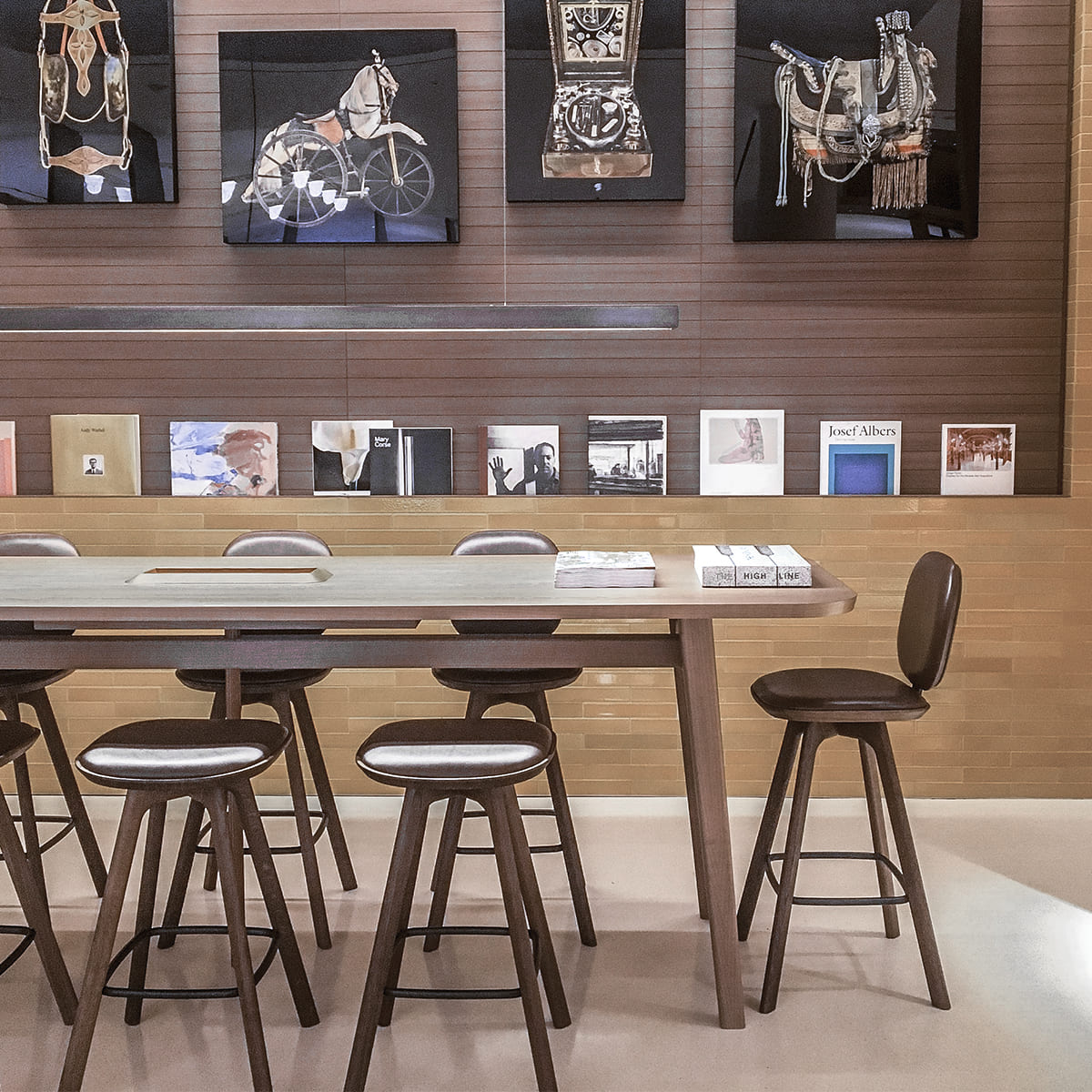 Дерево / Металл / Кожа / Текстиль / Без подлокотников / Со спинкой / Полубарные (65 см)