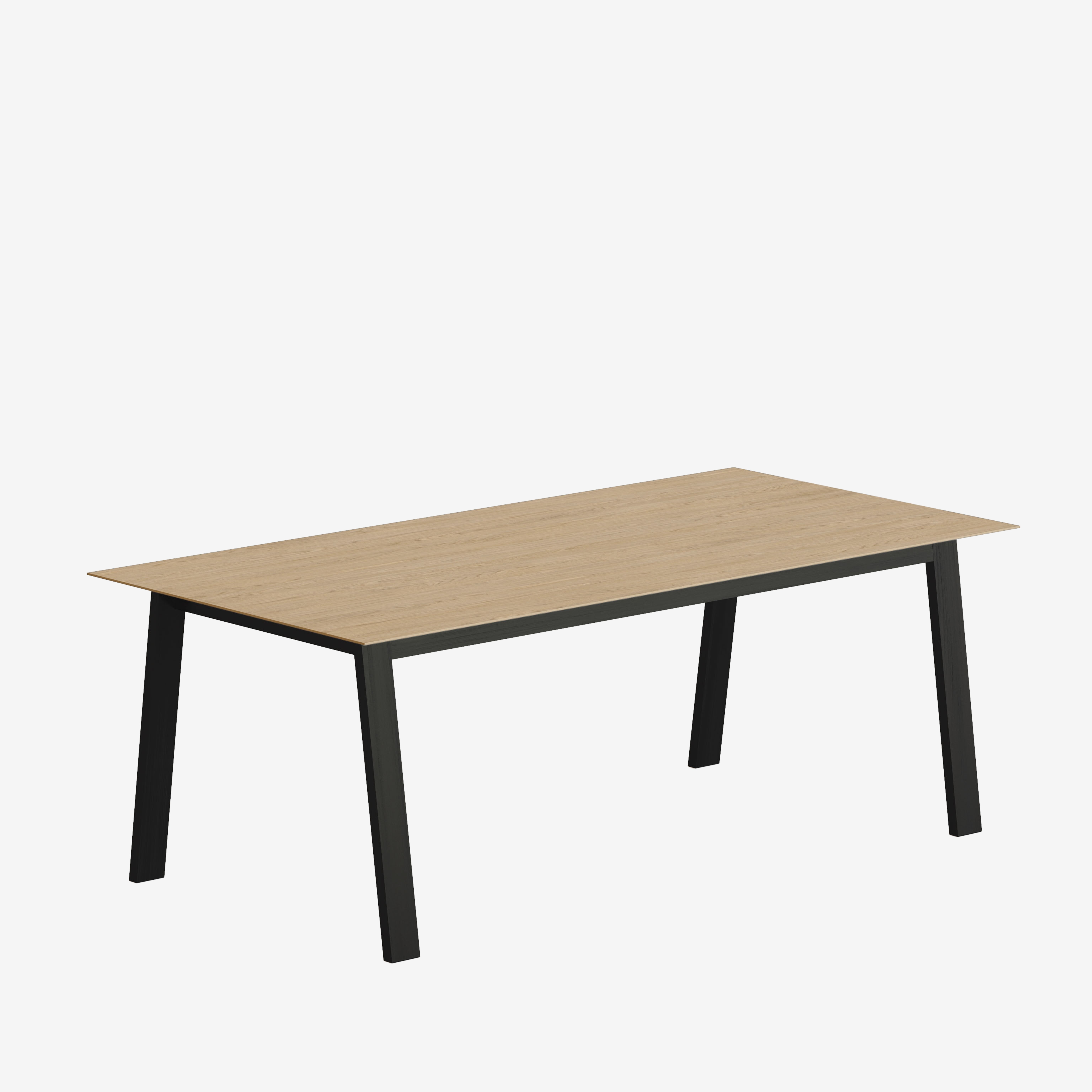 Ножки стола выполнены из стали c порошковой покраской, столешница – из шпонированной фанеры и МДФ.