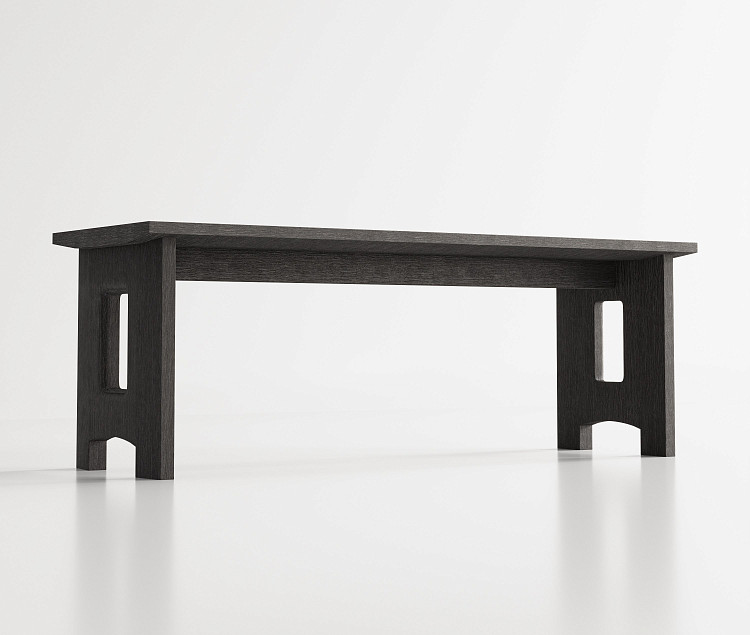 Скамья Modénature Philippe Bench от Jerome Botanic отличается строгими геометрическими формами. Ее плоское деревянное сиденье покоится на двух торцевых опорах с крупными прямоугольными прорезями. Дугообразные выемки в нижней части ножек придают конструкции оригинальный силуэт. Все элементы соединены в единую композицию с помощью нижней перемычки.