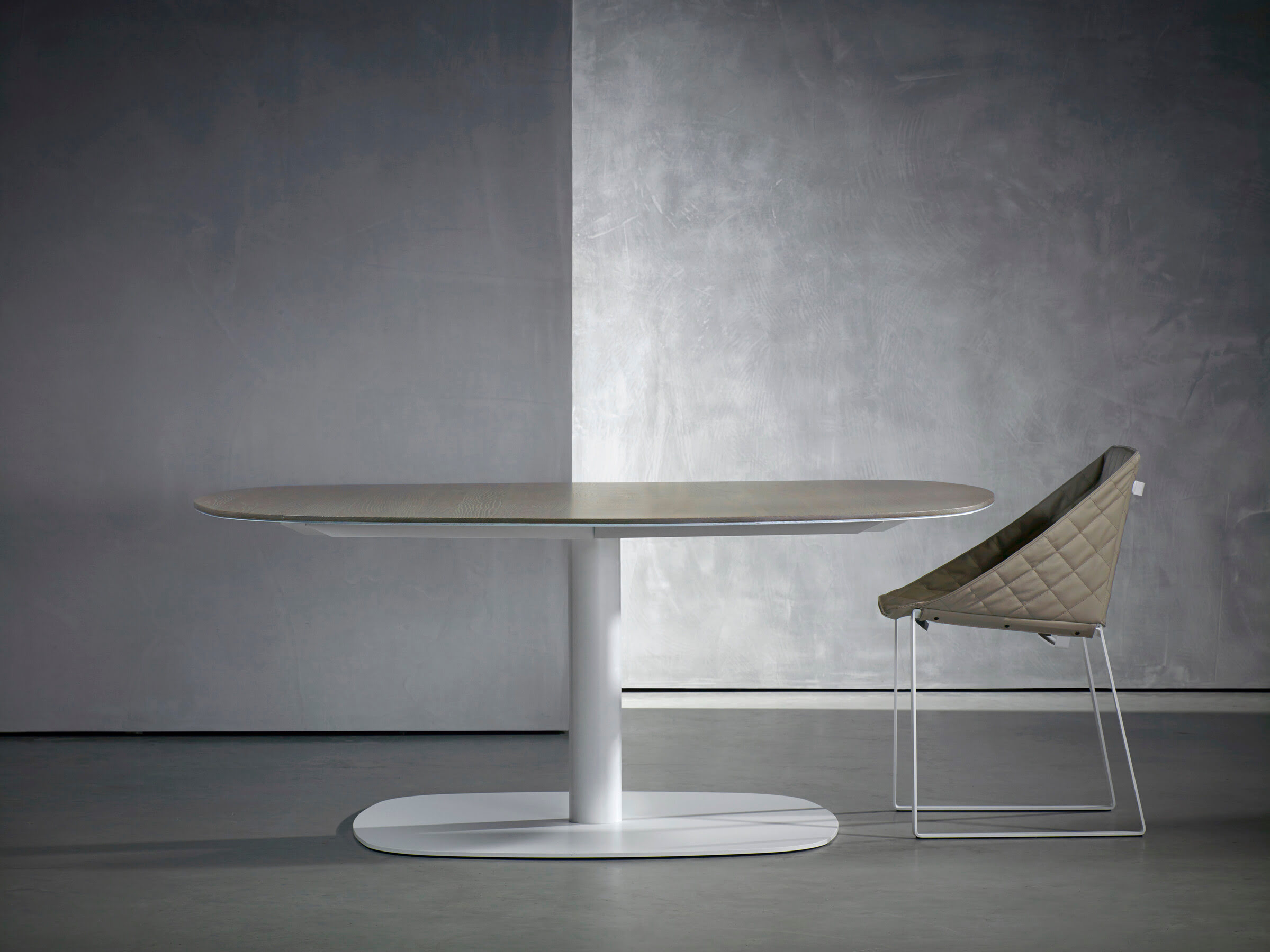 Стол Kekke Dining Table — образец утончённой роскоши. Модель имеет гладкую металлическую ножку и столешницу с мягкими закруглёнными краями. Мраморное или деревянное покрытие украшает интерьер, при этом идеально подходит для повседневного использования.