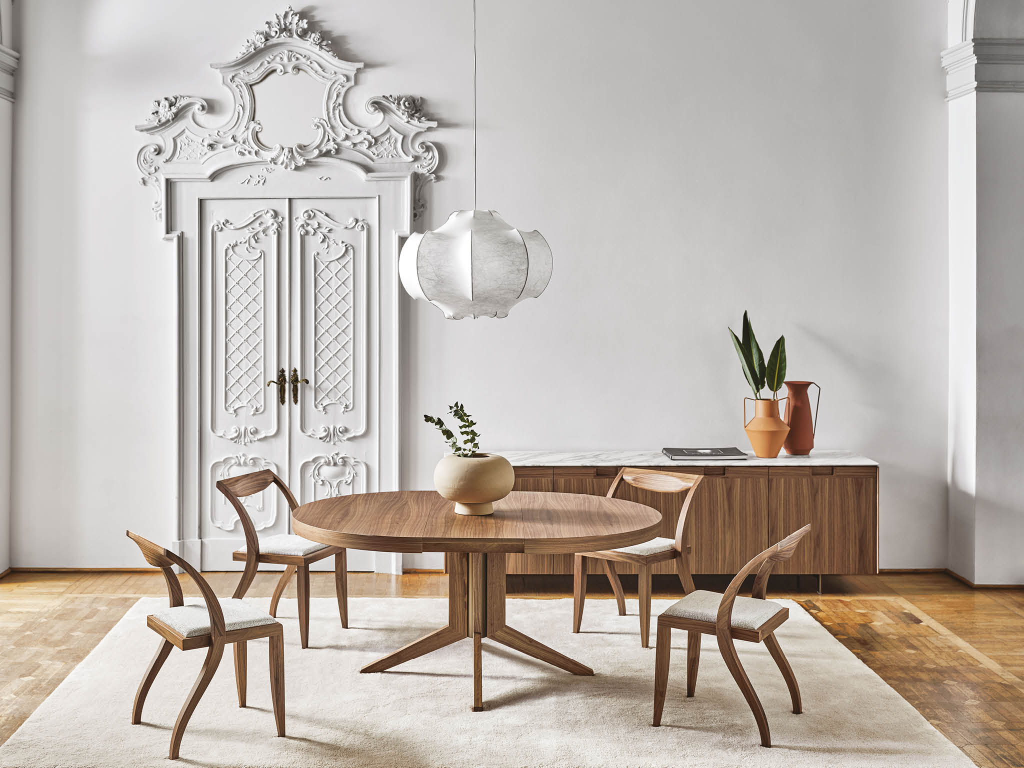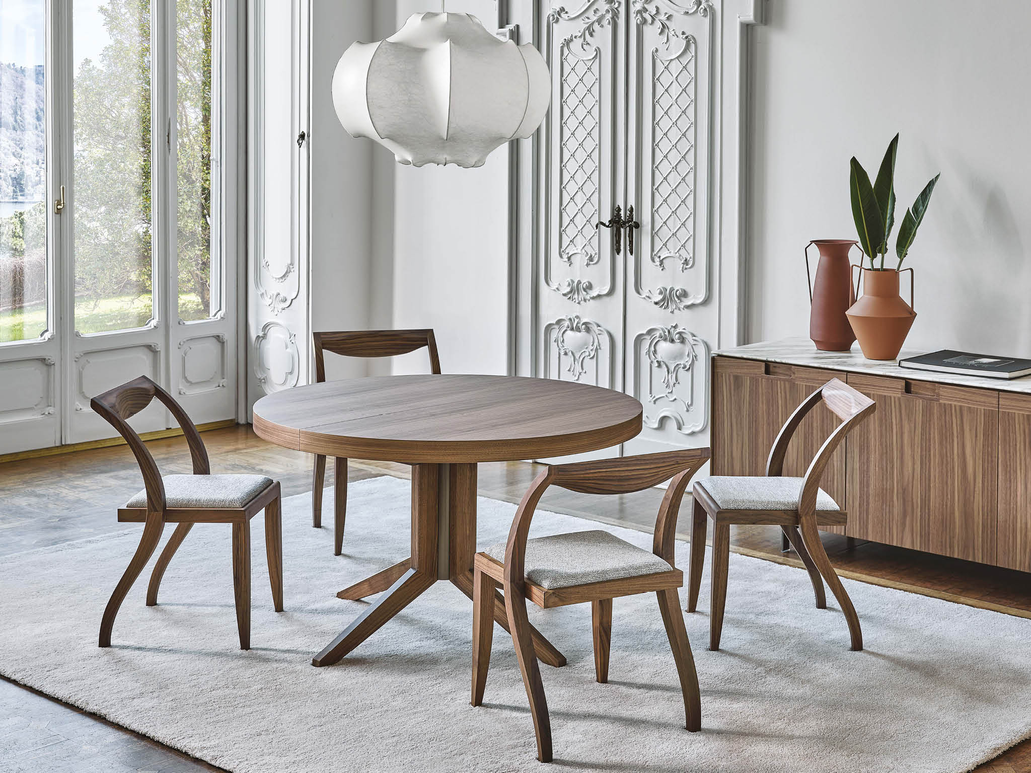 Функциональность и элегантность — отличительные черты обеденного стола Porada Bryant. Лаконичный круглый стол легко раскладывается до предмета мебели овальной формы, способного вместить 6 человек. Стол из массива ореха демонстрирует богатый опыт и высокие ремесленные навыки итальянской фабрики.