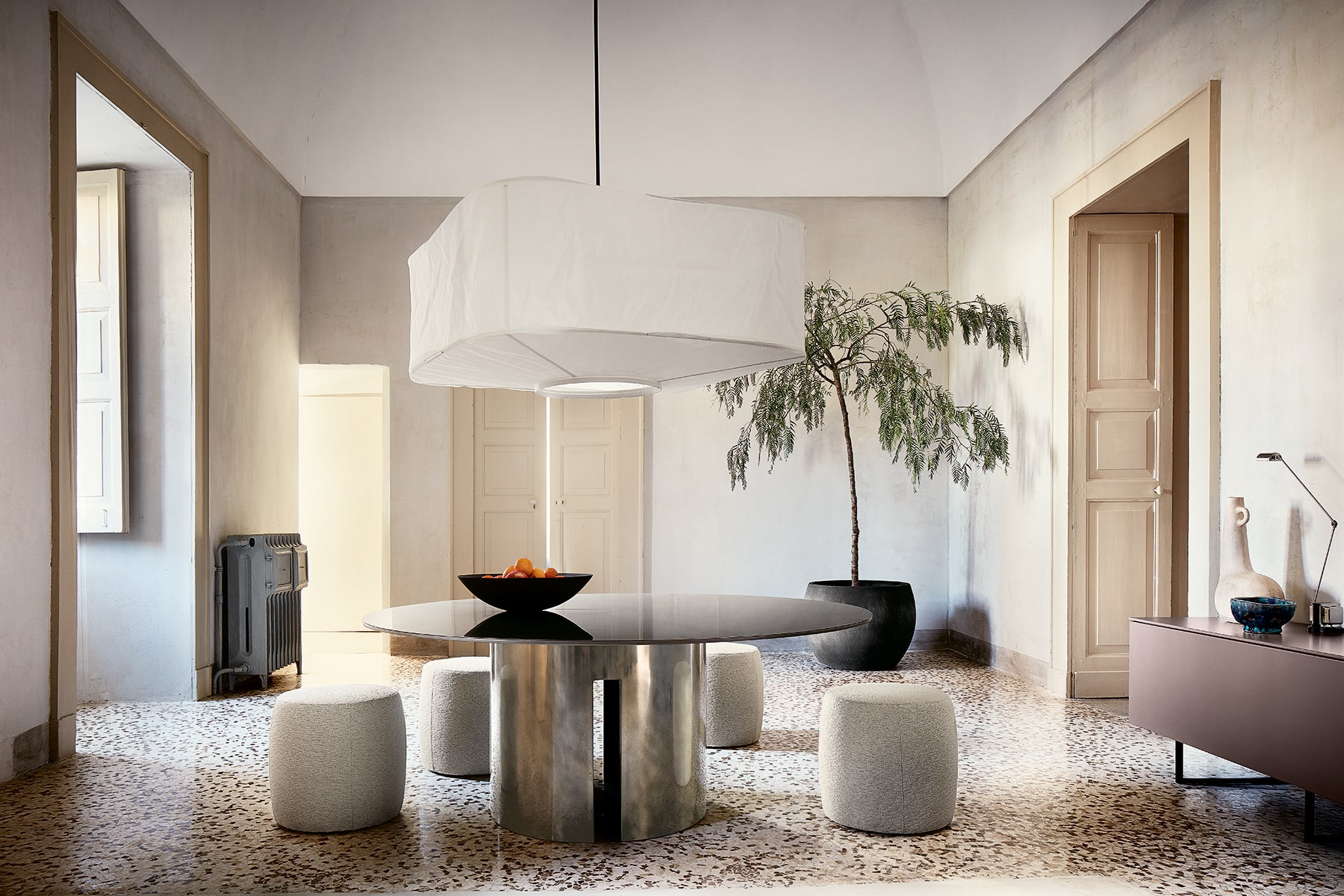 Стол Meridiani Gong отличается скульптурным силуэтом, визуальная сила которого подчёркивается множеством вариантов отделки. Будет являться отличным решением для комплектации столовой группы в современном стиле. Подробнее ознакомиться с доступными отделками для столешницы и основания можно во вкладке КАРТА ОТДЕЛОК.