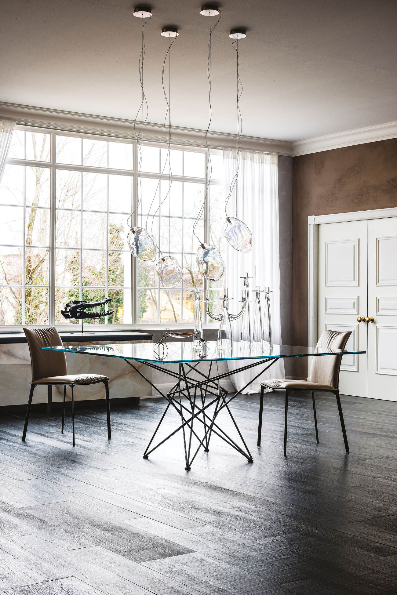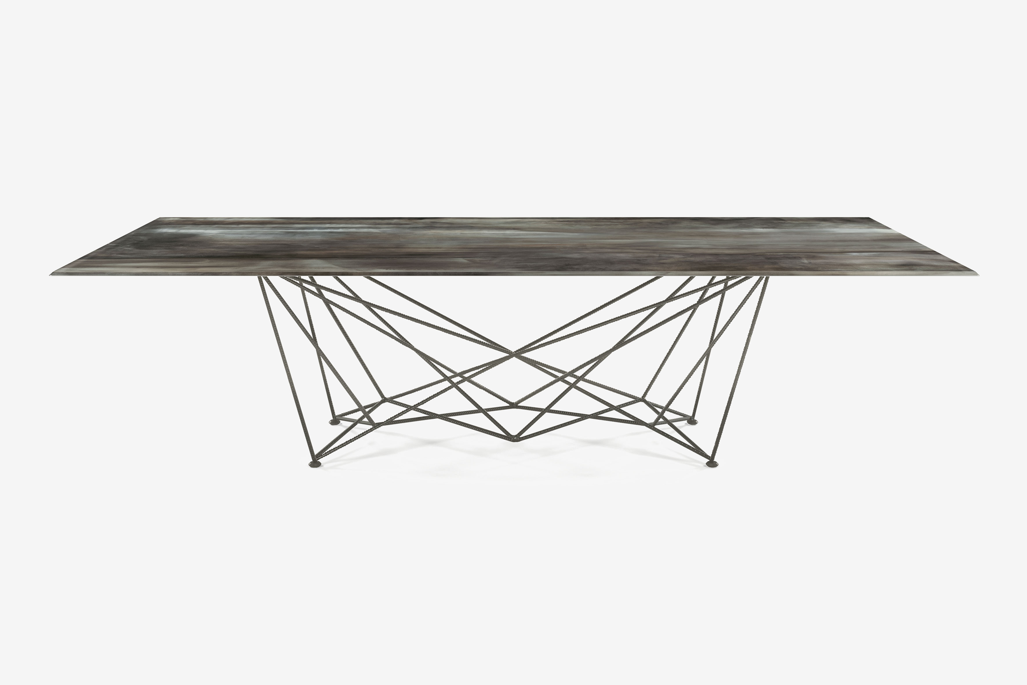 Обеденный стол Cattelan Italia Gordon — симбиоз нестандартных ножек и элегантной столешницы. Нижняя часть стола выполнена из тонких металлических планок, создающих хаотичные геометрические фигуры. Столешница Gordon может быть украшена художественным принтом или выполнена в однотонном варианте в зависимости от выбранного материала.