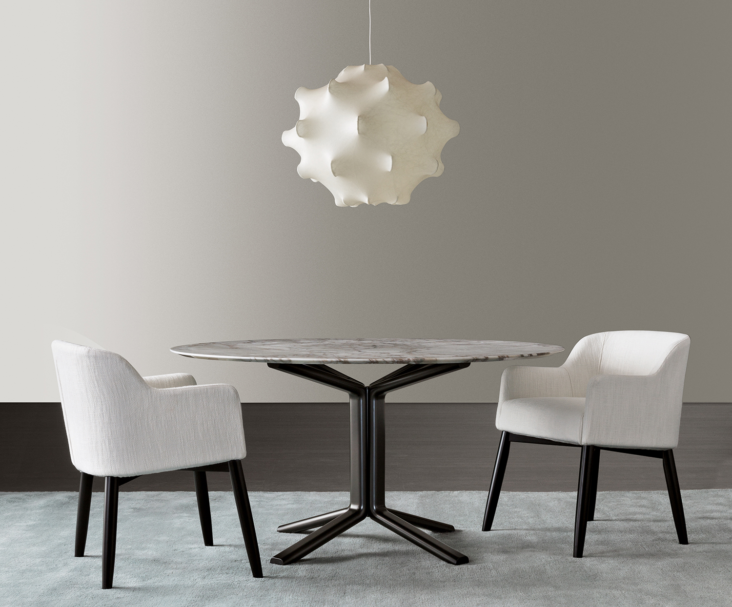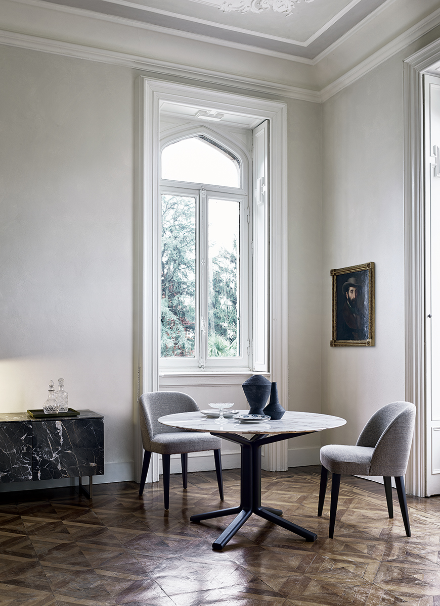Стол для обеда Miller — современная модель с зеркальными ножками-опорами, поддерживающими круглую столешницу. Минималистичный дизайн изделия делает его универсальным и позволяет легко вписаться в любой интерьер. Доступен в широком спектре отделок — от натурального дерева и лакированного покрытия до мрамора. Подробнее ознакомиться с доступными отделками для столешницы и основания можно во вкладке КАРТА ОТДЕЛОК.