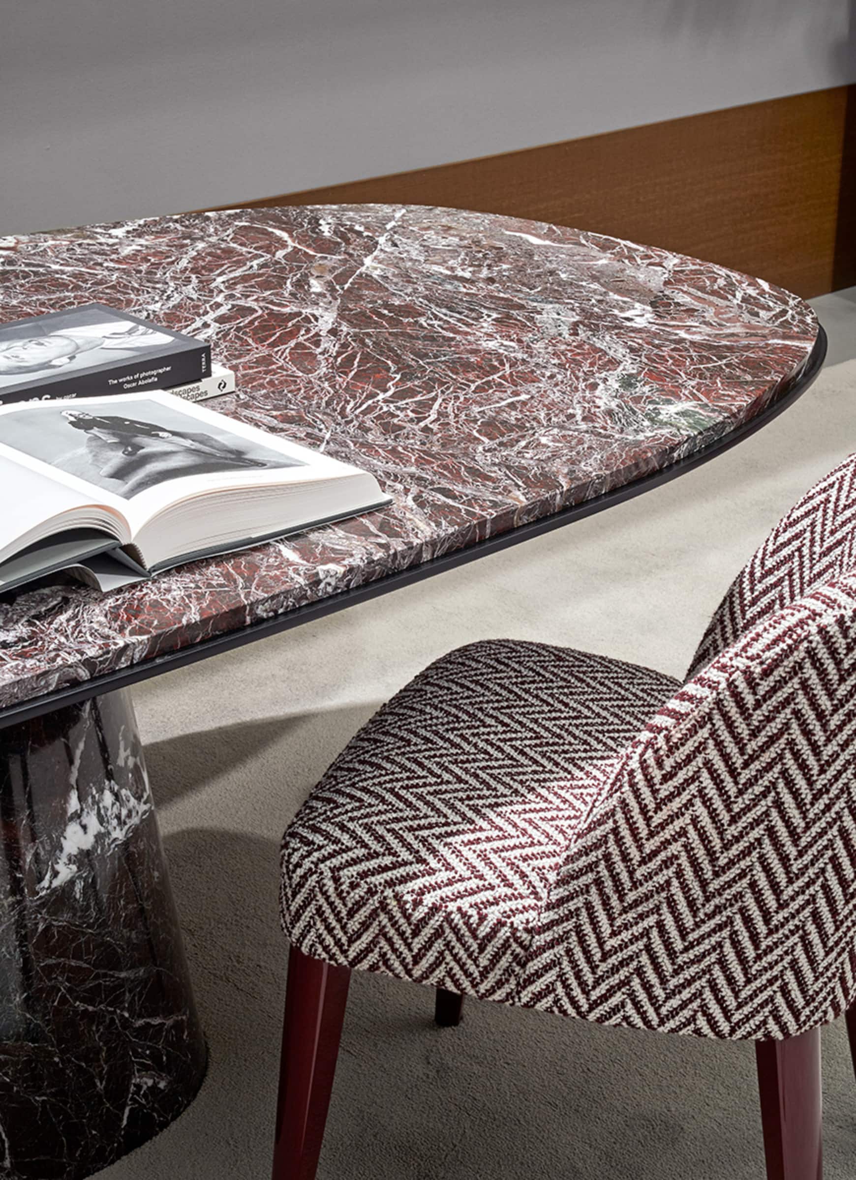 Стол может быть выполнен из натурального или лакированного дерева (глянцевый/матовый) или из мрамора (глянцевый/матовый). Ознакомиться с полным каталогом доступных отделок и цветов можно во вкладке КАРТА ОТДЕЛОК.
