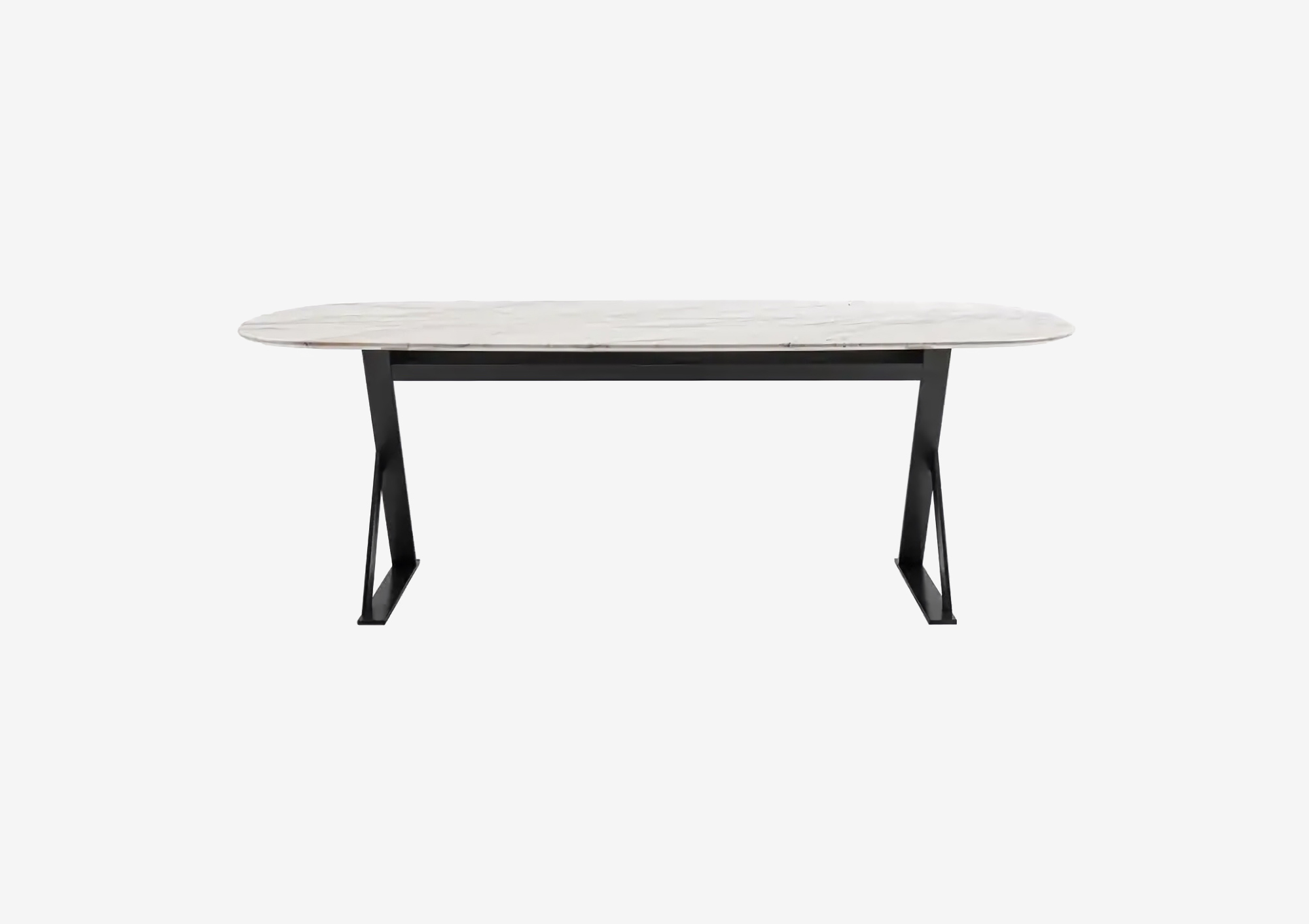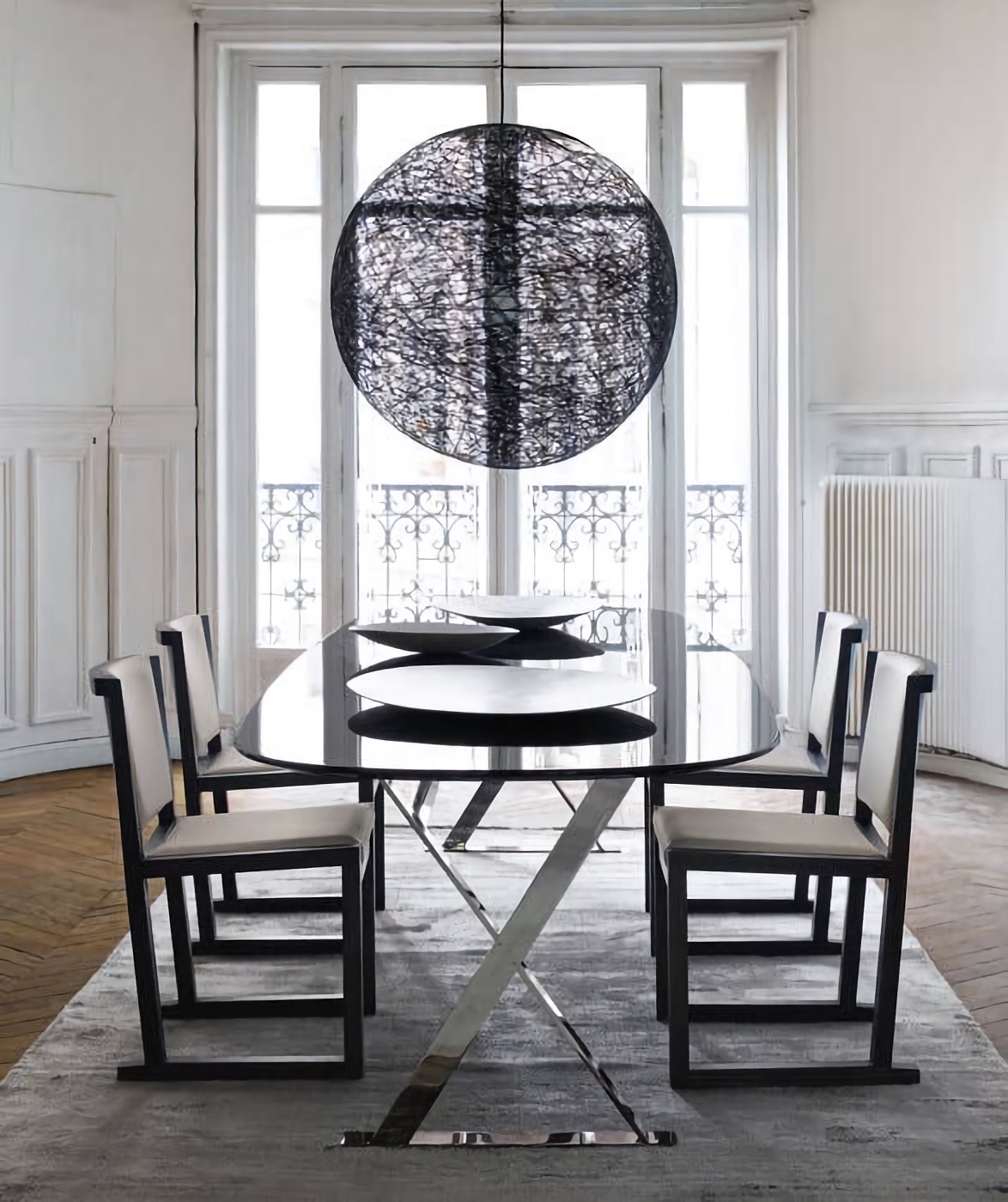 Обеденный стол Maxalto Pathos — изящная модель с тонкими скрещёнными ножками. Закруглённые края Pathos создают визуальный баланс, идеально вписываясь в элегантный образ модели. Столешница изделия доступна в необычном глянцевом исполнении.