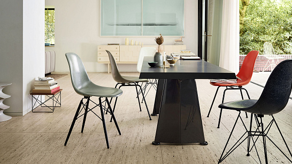 Обеденный стол Vitra Trapèze был спроектирован Jean Prouvé для французского университета. Ножки необычной трапециевидной формы послужили вдохновением для названия модели и стали её отличительной деталью. Интерьерный предмет способен легко вписаться не только в домашнюю обстановку, но и в общественные пространства (кафе, рестораны).