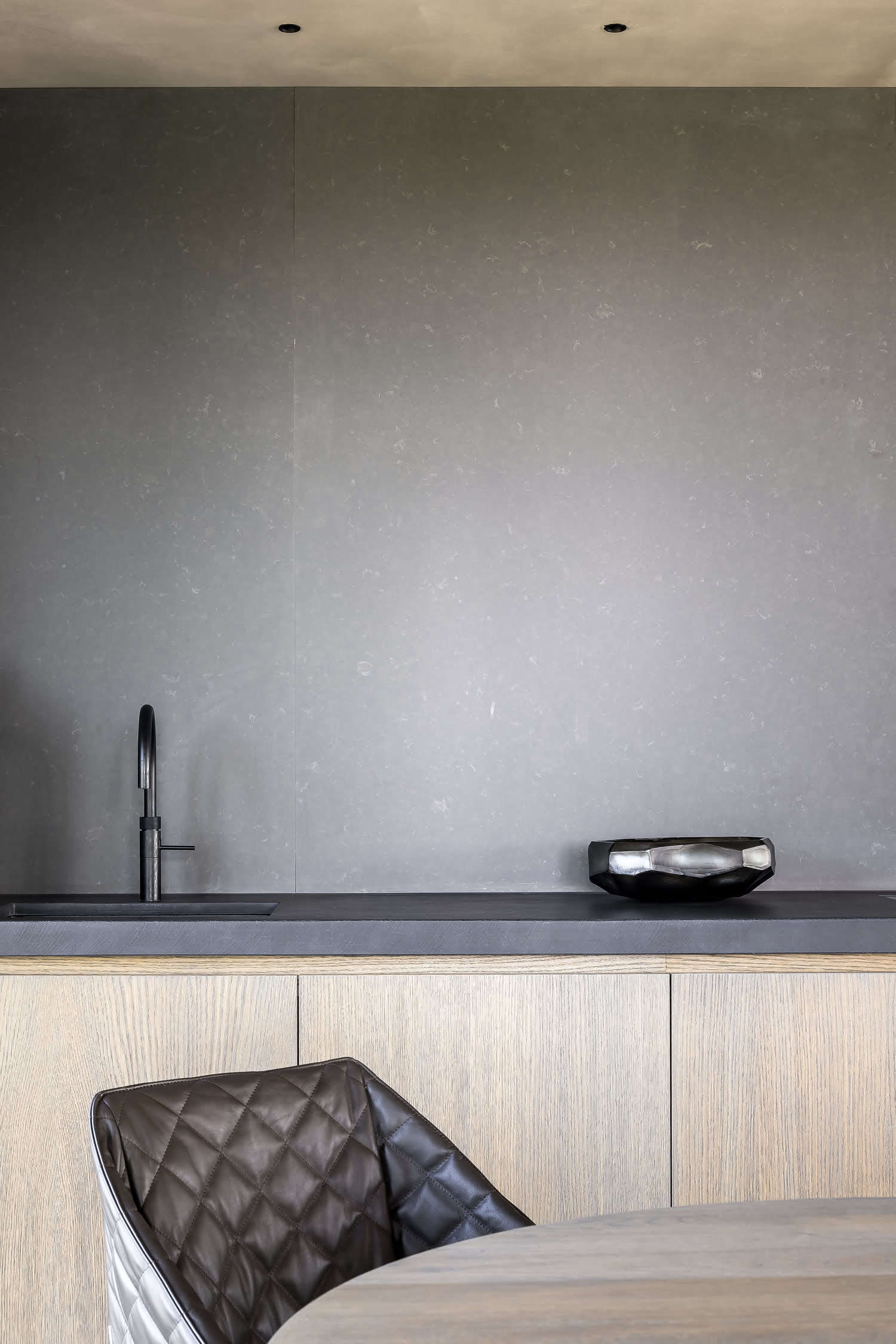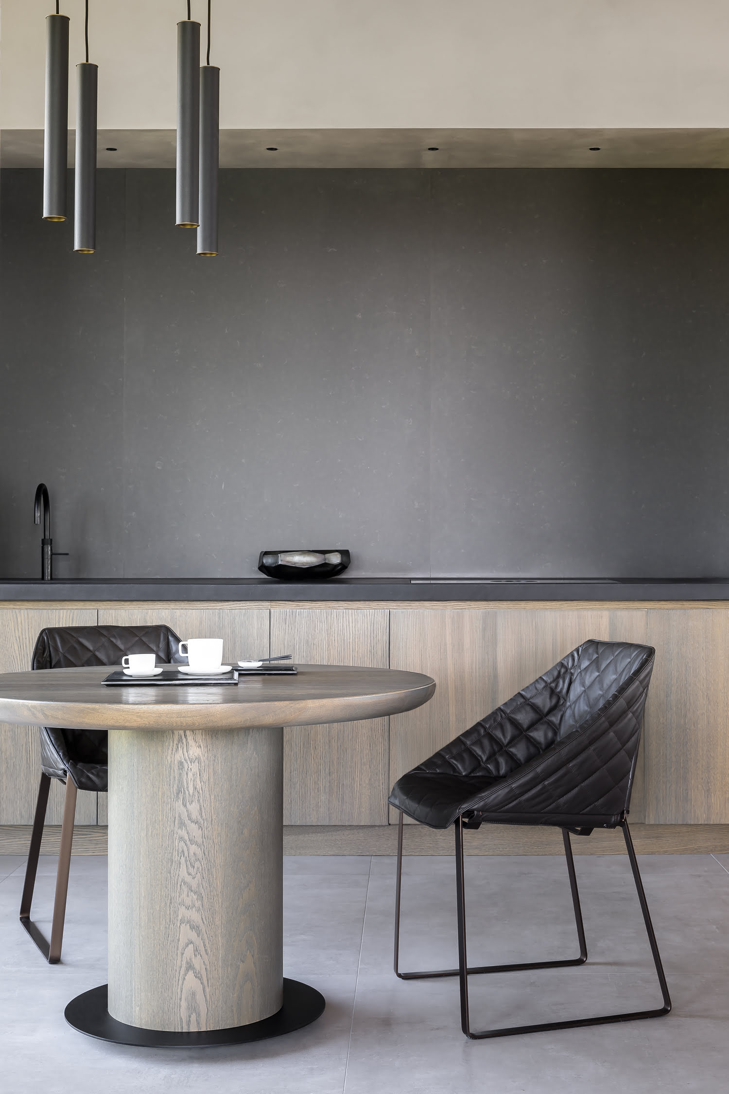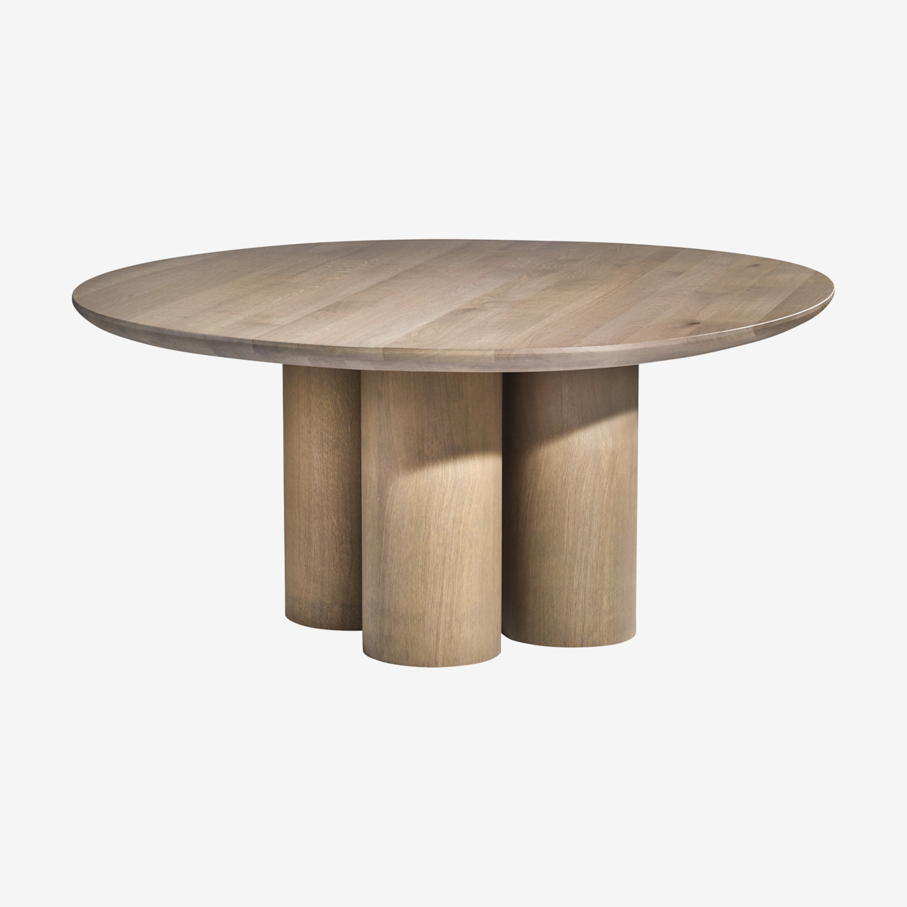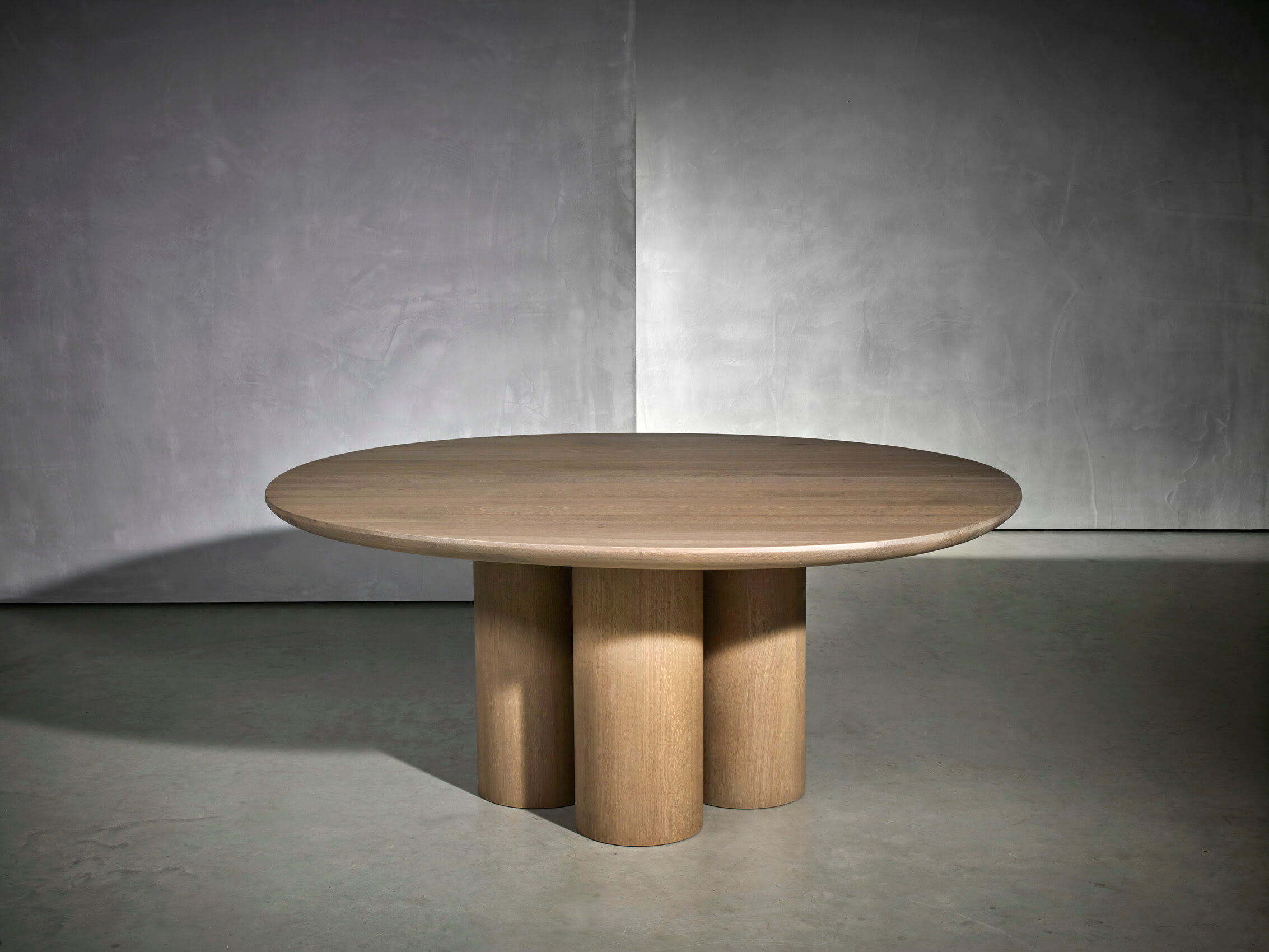 Конструкция стола Piet Boon Olle Dining Table состоит из окружностей. Плоская столешница плавно перетекает в объёмное цилиндрическое основание. Модель большого размера имеет три ножки, придающие дополнительную устойчивость.