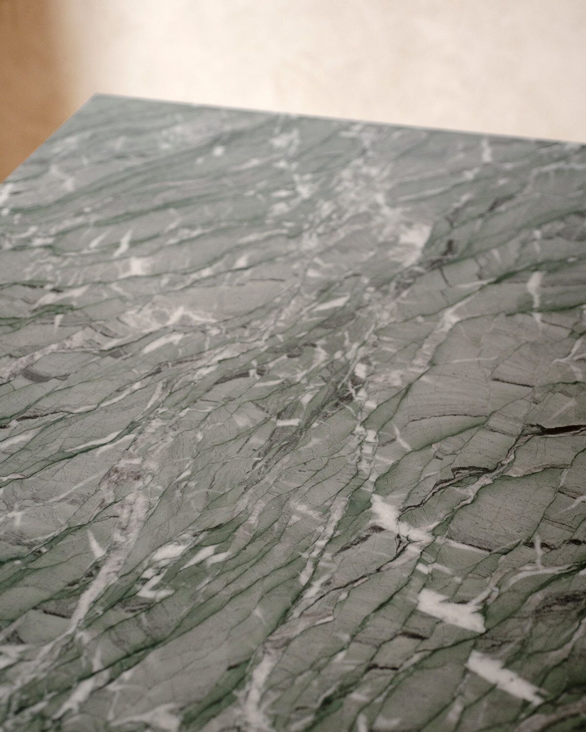 Стол Tacchini Clockwise от Michael Anastassiades — модель с квадратной или прямоугольной столешницей. Мраморная версия - с контрастными натуральными прожилками, деревянная — с четкой текстурой. Угловой разворот широких опор напоминает движение по кругу, соответствуя названию модели.