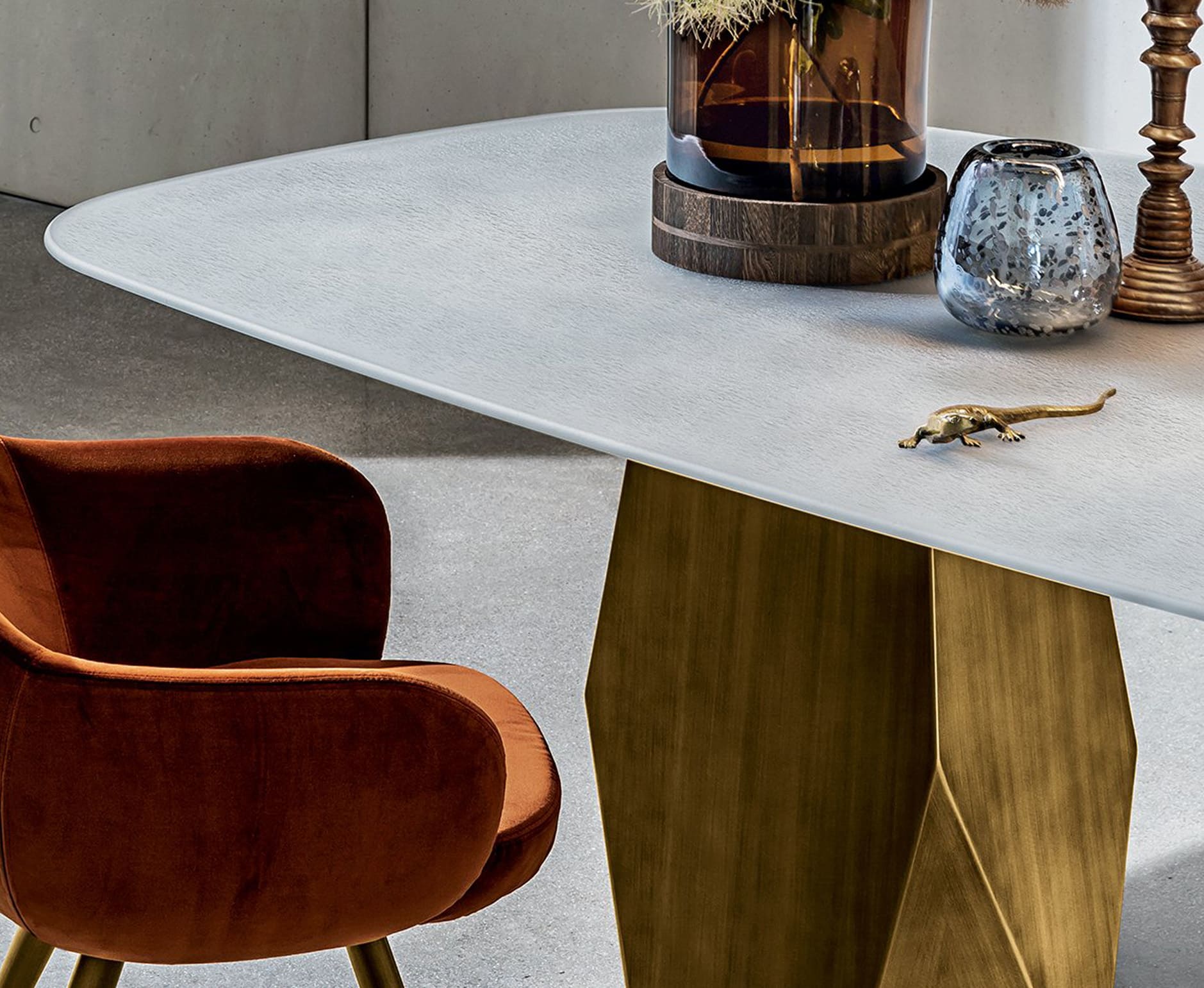 Стол Sovet Italia Deod Two Bases соединяет в себе изящную столешницу и устойчивые ножки строгих геометрических форм. Основание модели, вдохновлённое горными пейзажами, создаёт ощущение домашнего уюта. Многообразие материалов делает стол Deod Two Bases прекрасным выбором для помещений любой стилистики.