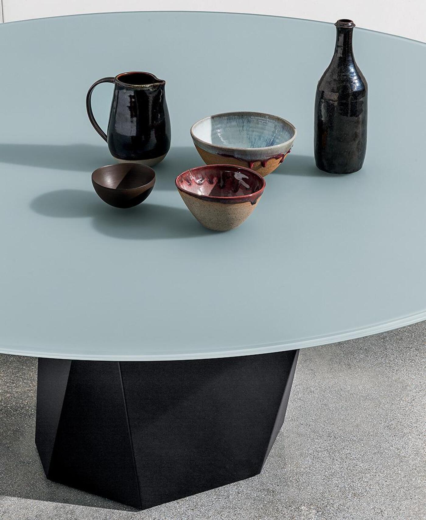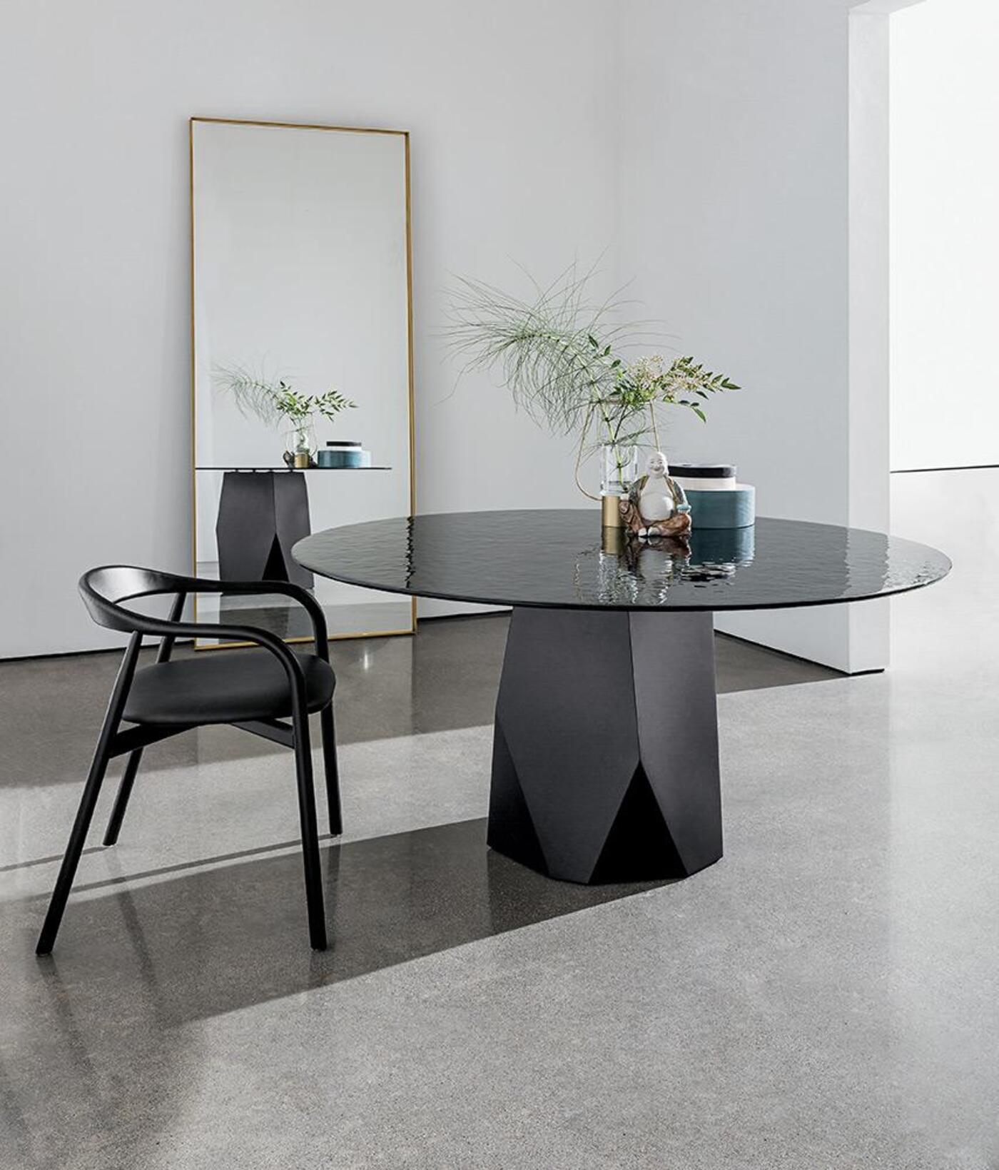 Стол Sovet Italia Deod — пример того, как сочетание противоположных фактур и материалов может создать идеальный интерьерный предмет. Геометрическое основание вдохновлено пейзажами Доломитовых Альп. Лёгкая столешница и монументальные ножки соединяются в естественном равновесии.