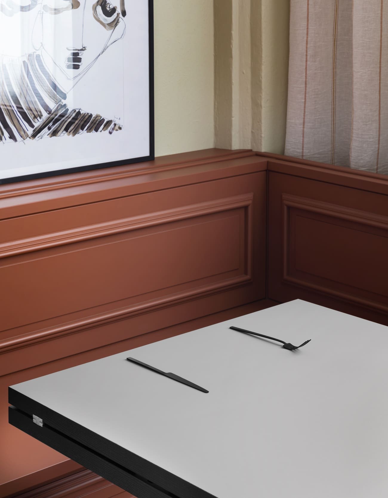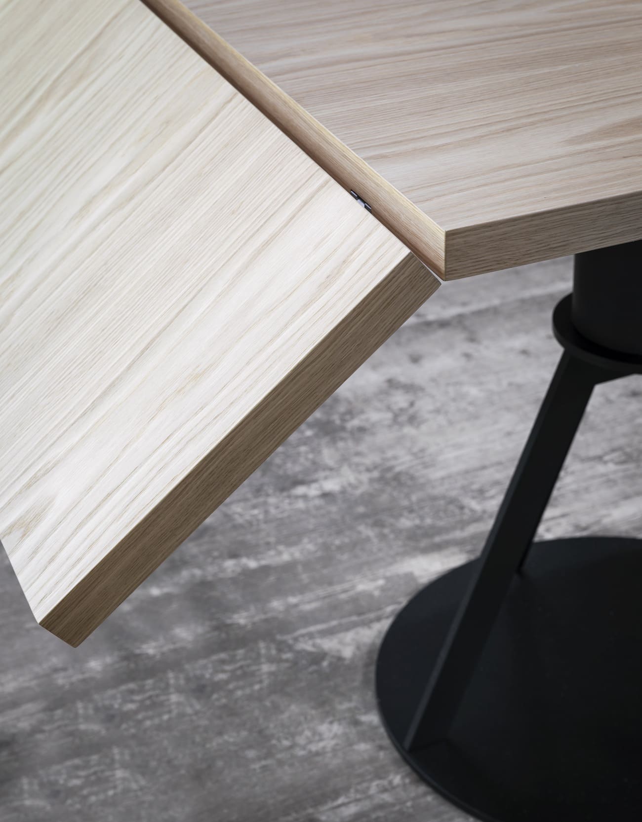 Компактный стол Miniforms Geronimo подойдёт для оформления небольших помещений. Предмет интерьера имеет стильный минималистичный дизайн, подчёркиваемый столешницей из натурального дуба, ясеня или ореха. Тонкие линии лакированного основания делают стол более утончённым и изящным.