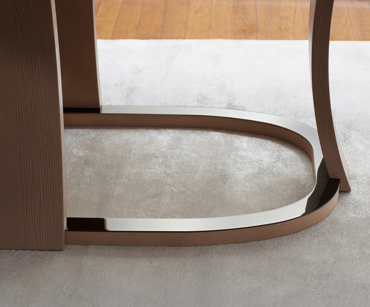 Стол Potocco Grace от Mauro Lipparini — модель с овальной столешницей и фигурным основанием. Изогнутые симметричные ножки плавно соединяются со столешницей и крепятся к кольцу внизу. Доступна версия с круглой столешницей.