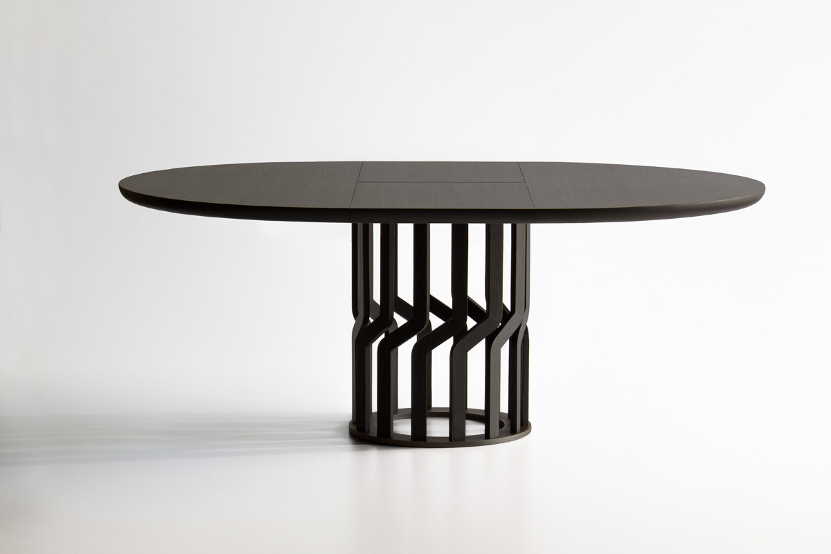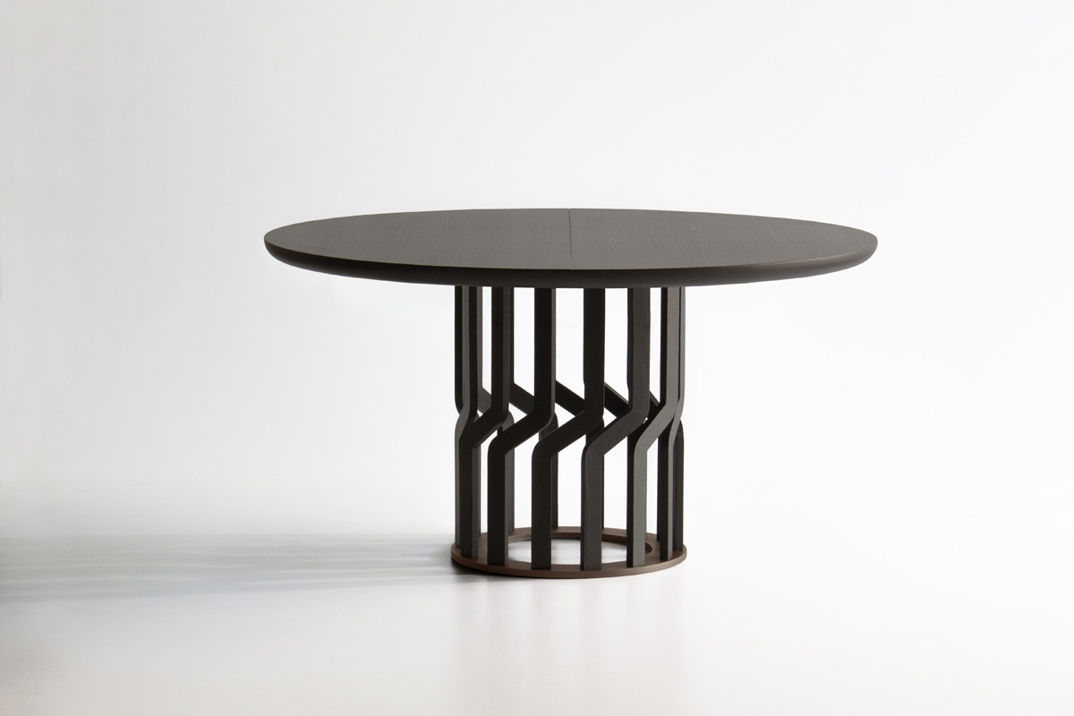 Обеденный стол Potocco Intreccio от Nava + Arosio — модель с массивным деревянным основанием в виде переплетенных реек. 14 элементов из массива ясеня почти соприкасаются друг с другом и создают сложный и выразительный рисунок. Столешница из массива дерева сохраняет единство материала.