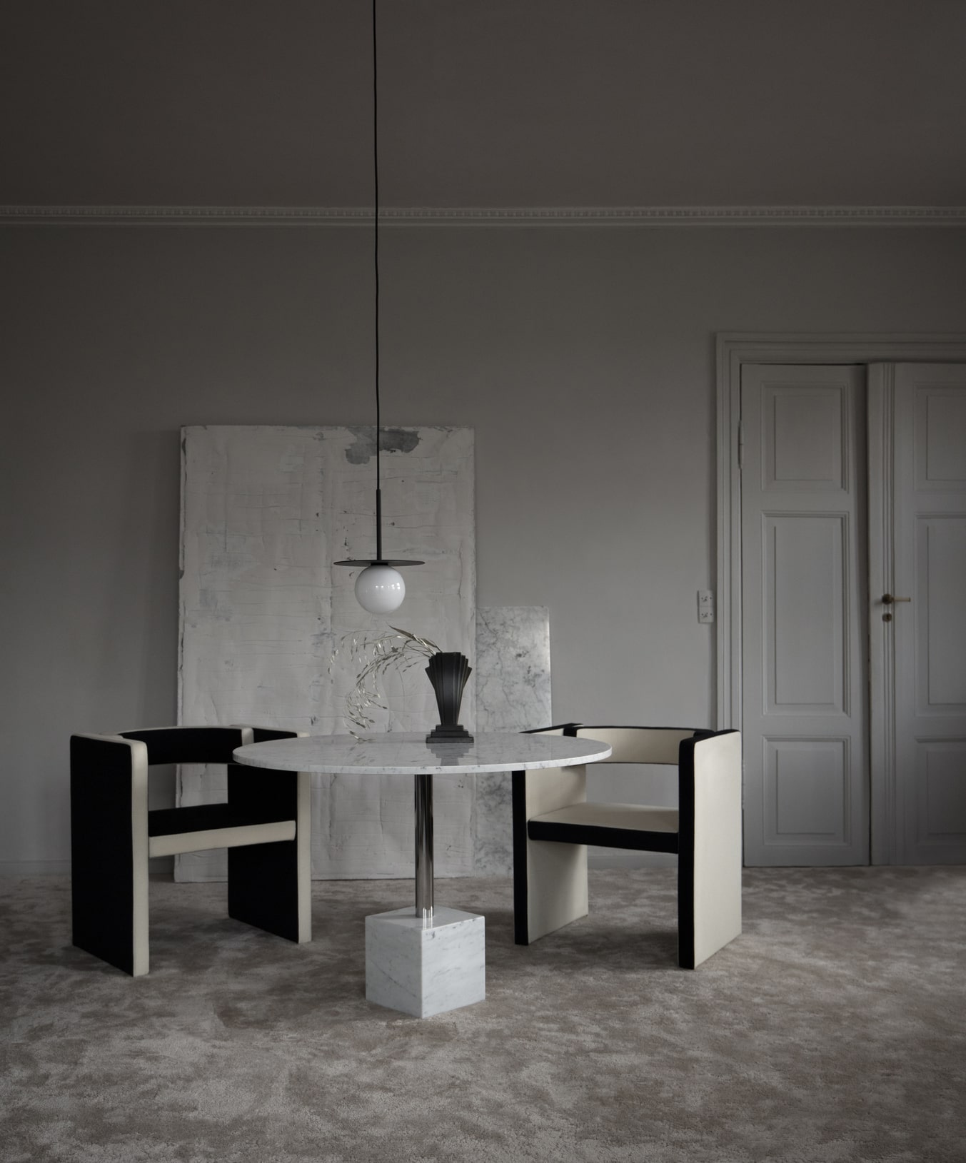 Стол Friends Founders Knockout Dining Table станет сердцем столовой или кухни. В нём соединяются красота геометрии, качественный шелковистый мрамор и акцентная деталь всей коллекции Knockout: основание в виде объёмной фигуры.