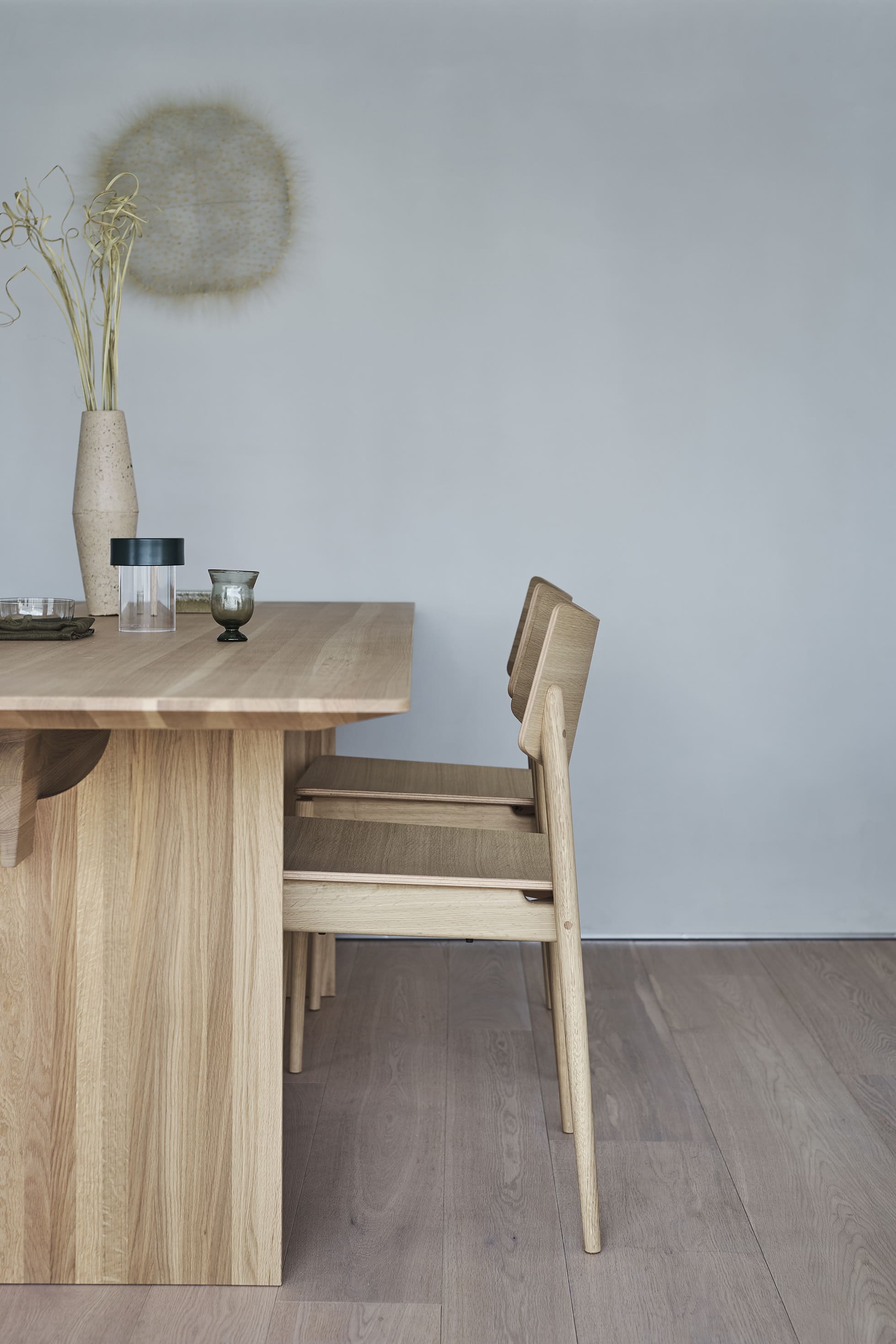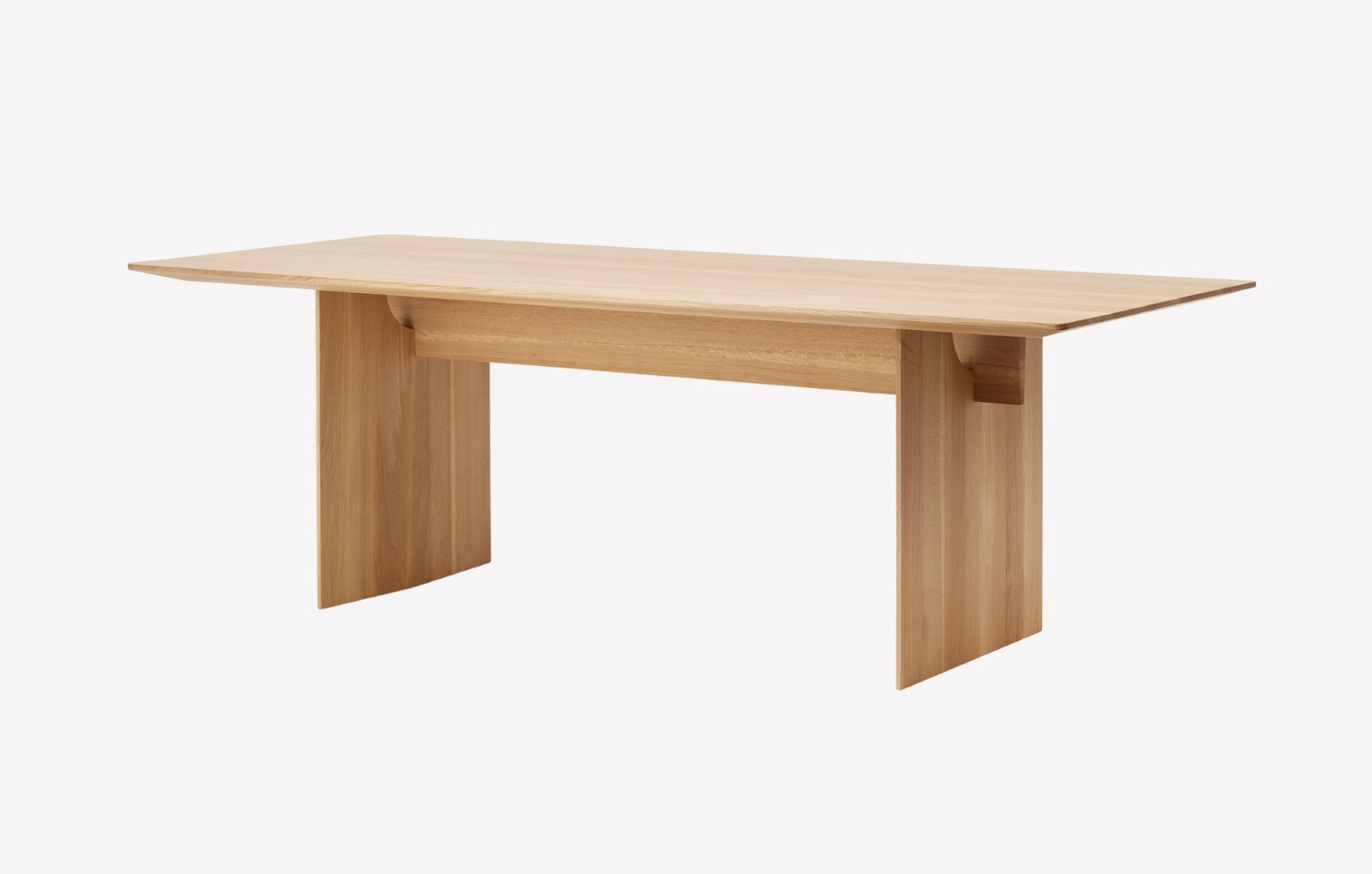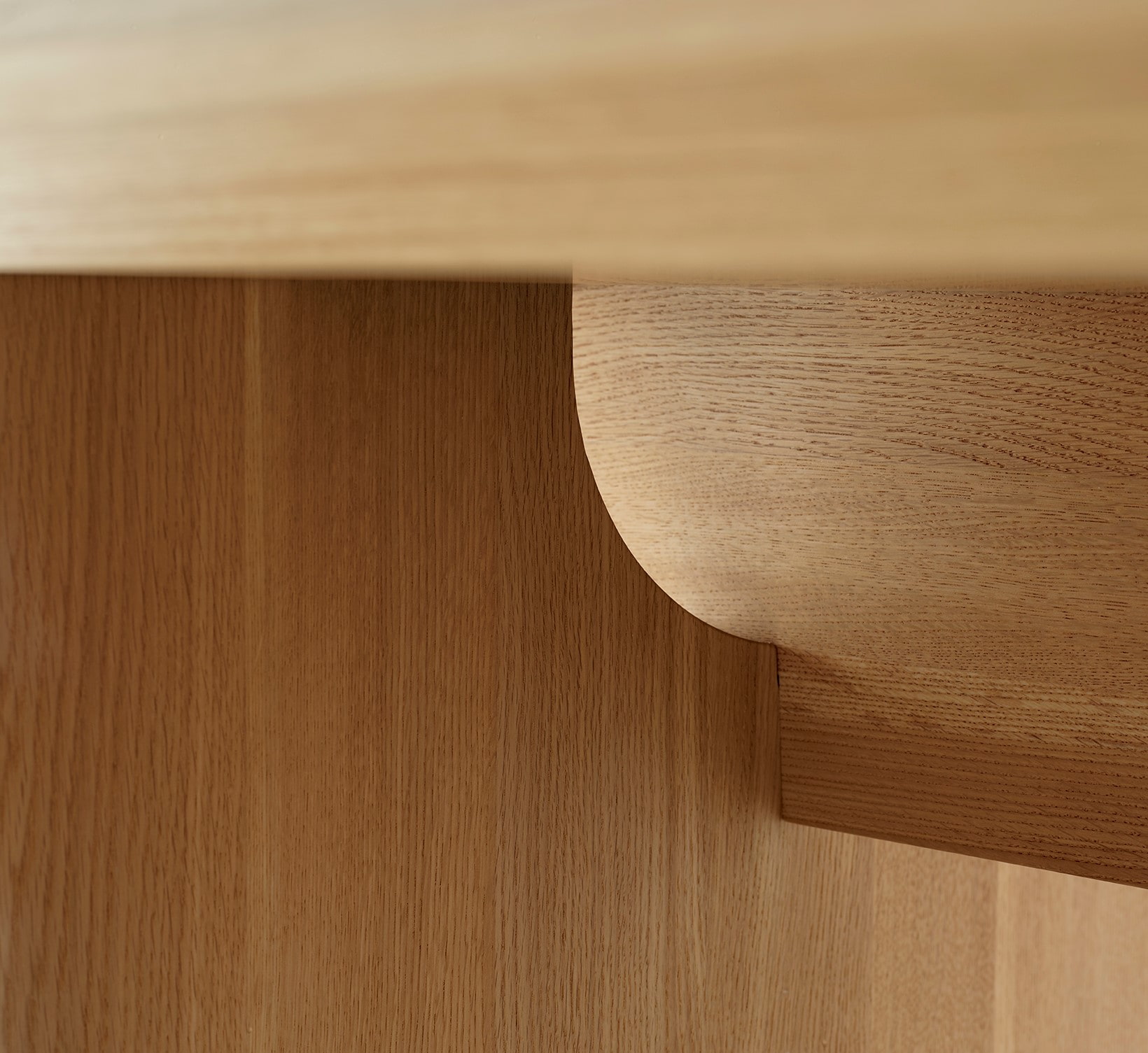 Обеденный стол N–DT01 полностью выполнен из чистого неокрашенного дуба. Также доступен в оттенках Smoked Oak и Grain Matte Black.