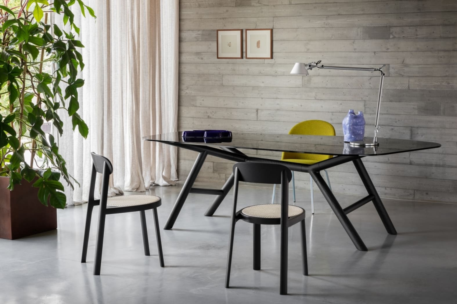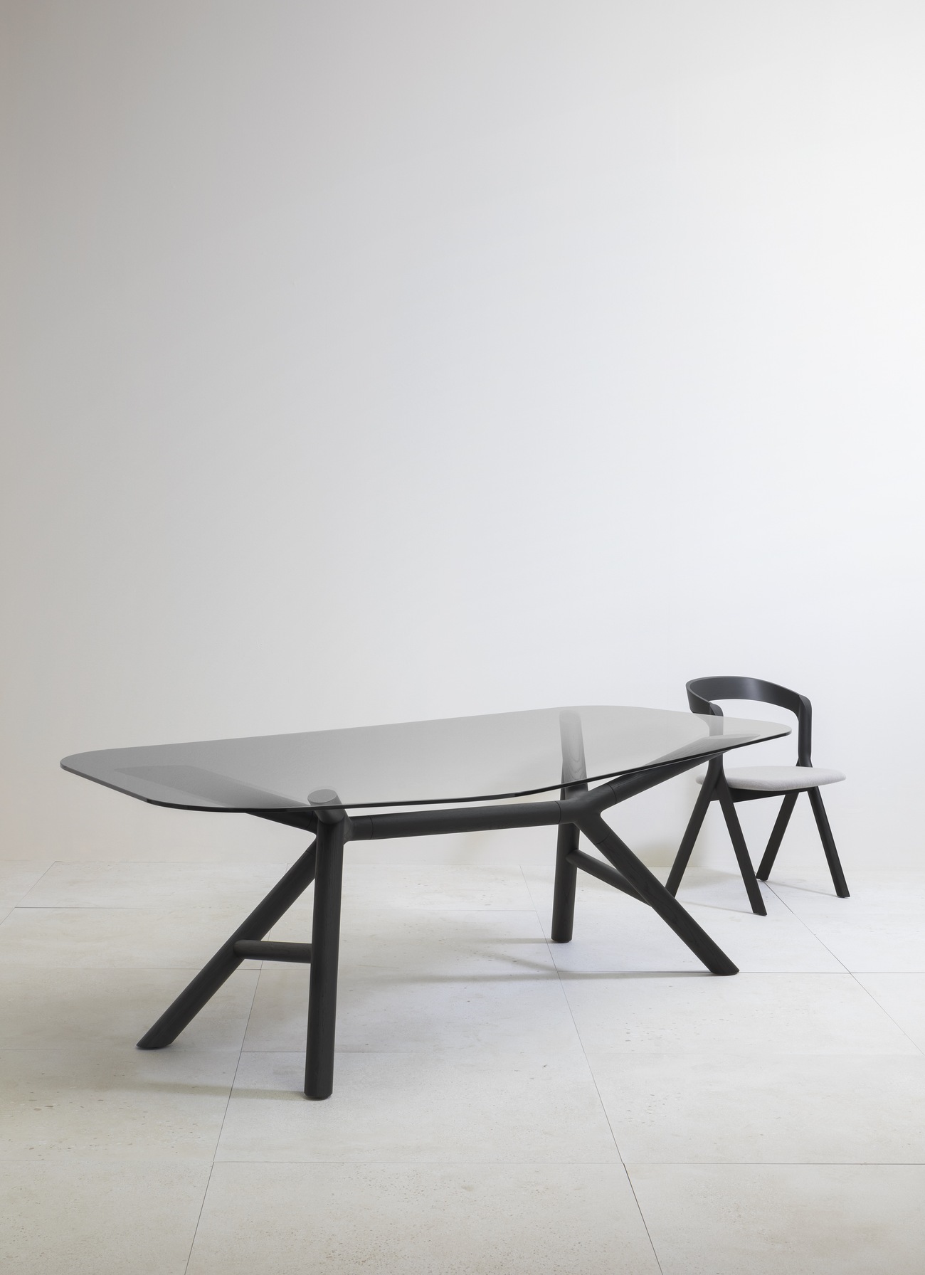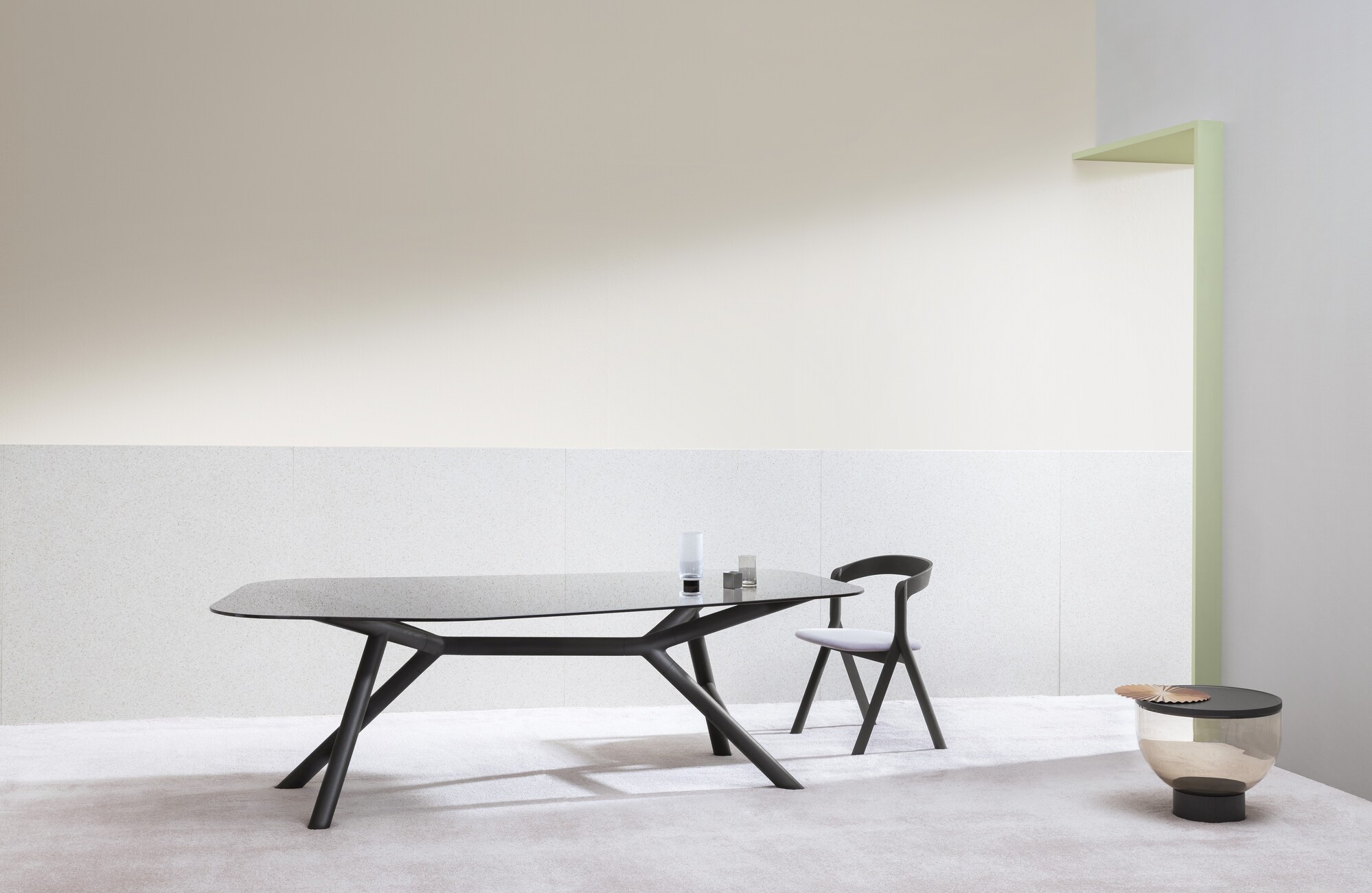 Необычная ассиметричная форма стола Miniforms Otto привлекает внимание с первого взгляда. Сочетание лёгкого прозрачного стекла и фактурных деревянных ножек даёт необычный результат. Otto — это образец современного лаконичного дизайна.