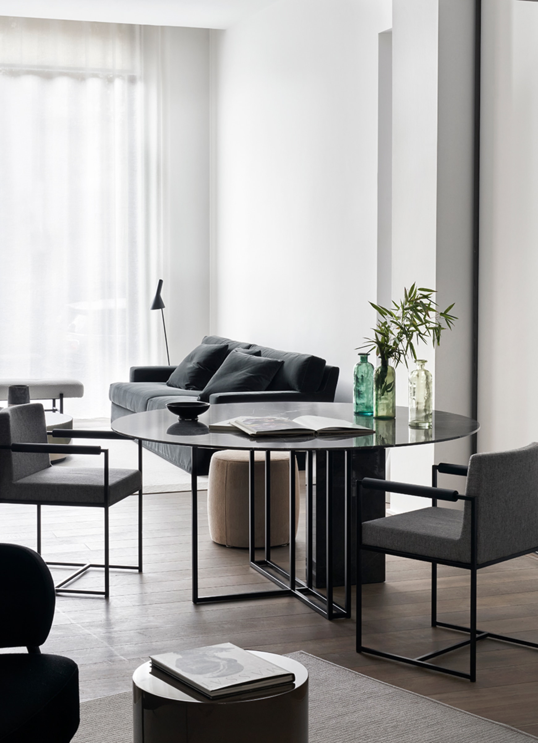 Название стола Meridiani Plinto взято из латинского слова "Plinthus", которое обозначает архитектурный элемент, служащий опорой для колонн. Этот скульптурный предмет мебели состоит из монолитного основания и столешницы, которые доступны в различных материалах, формах и цветах. Подробнее ознакомиться с доступными отделками для столешницы и основания можно во вкладке КАРТА ОТДЕЛОК.