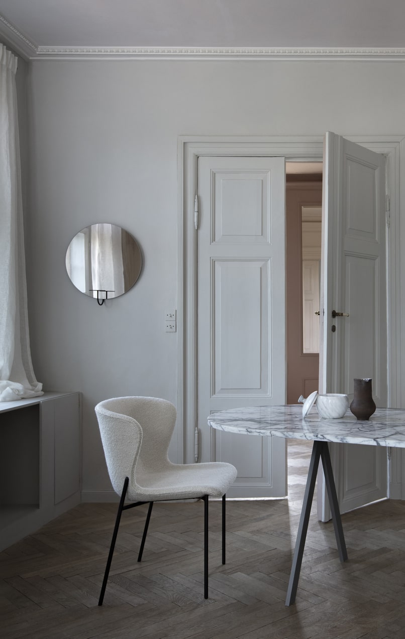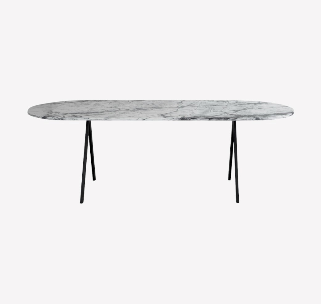 Столешница стола Friends Founders Saw Marble изготовлена из цельного закруглённого куска мрамора. Он имеет приятную на ощупь шелковисто-матовую отделку, которая подчёркивает уникальные узоры необработанного камня.