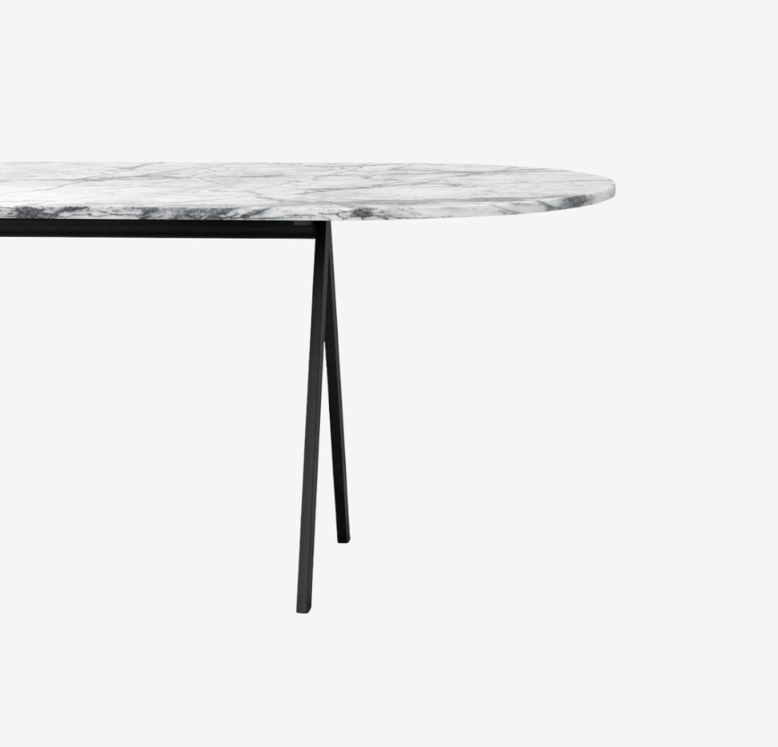 Столешница обеденного стола Saw Marble сделана из мрамора в оттенках White и Black. Каркас металлический с порошковым покрытием в оттенке Black. Стол может быть сделан под заказ с шириной от 200 см до 300 см и глубиной от 80 см до 100 см.