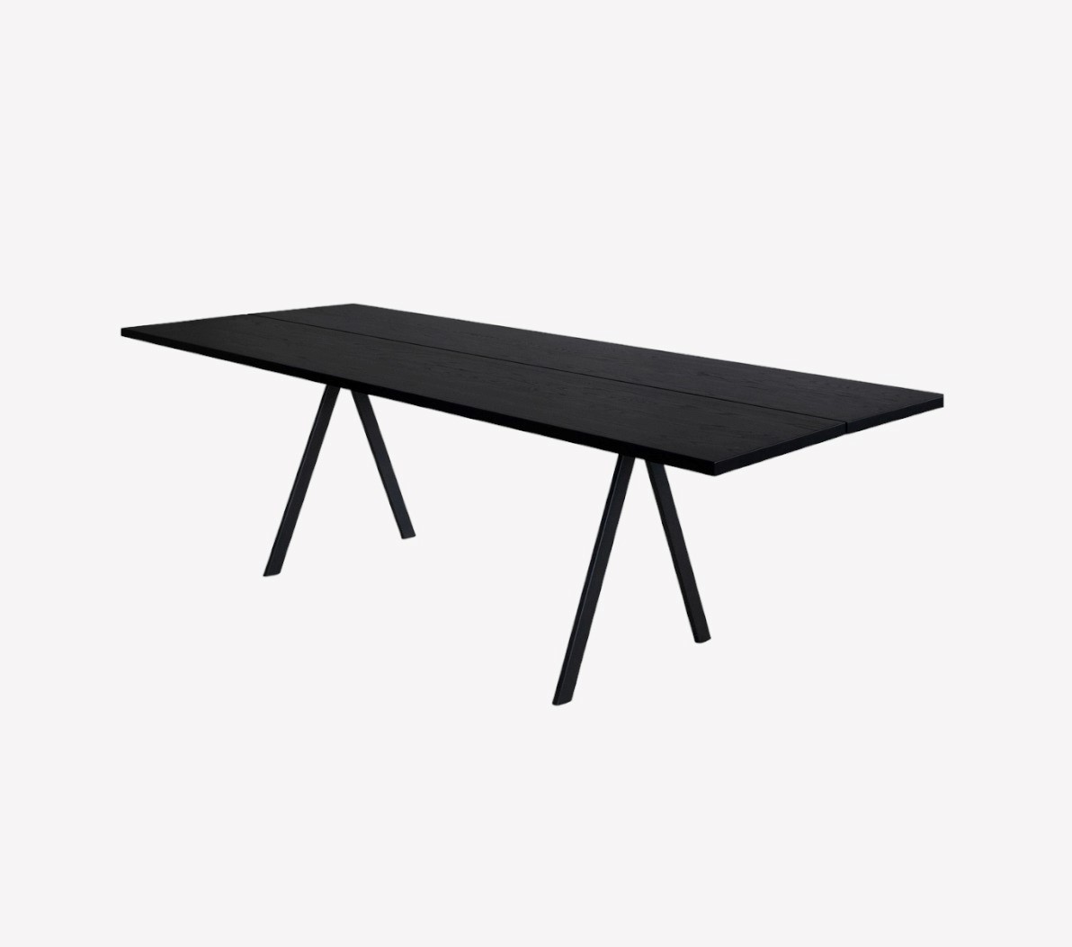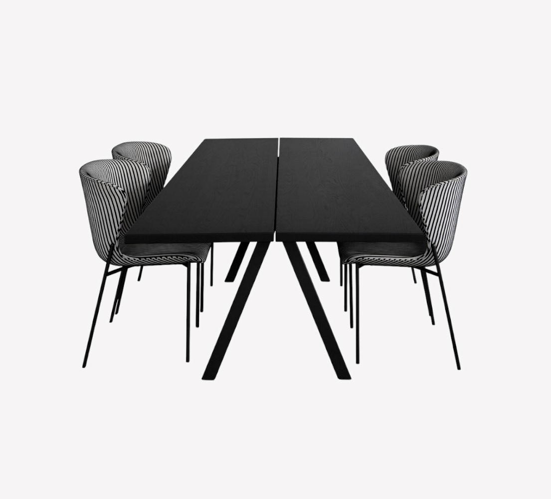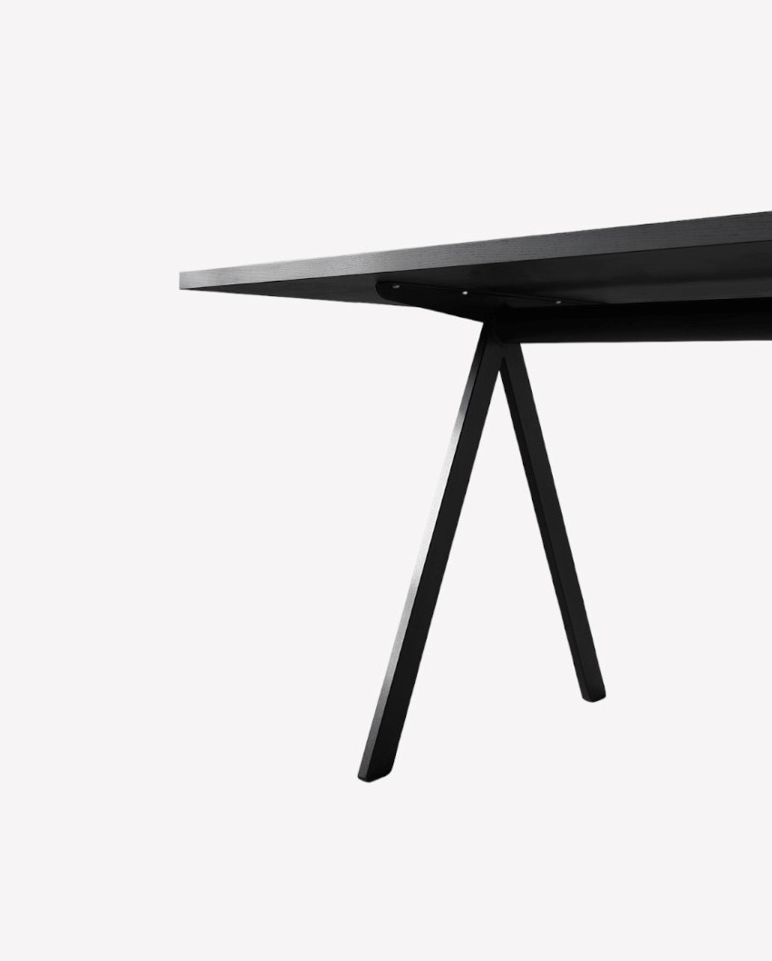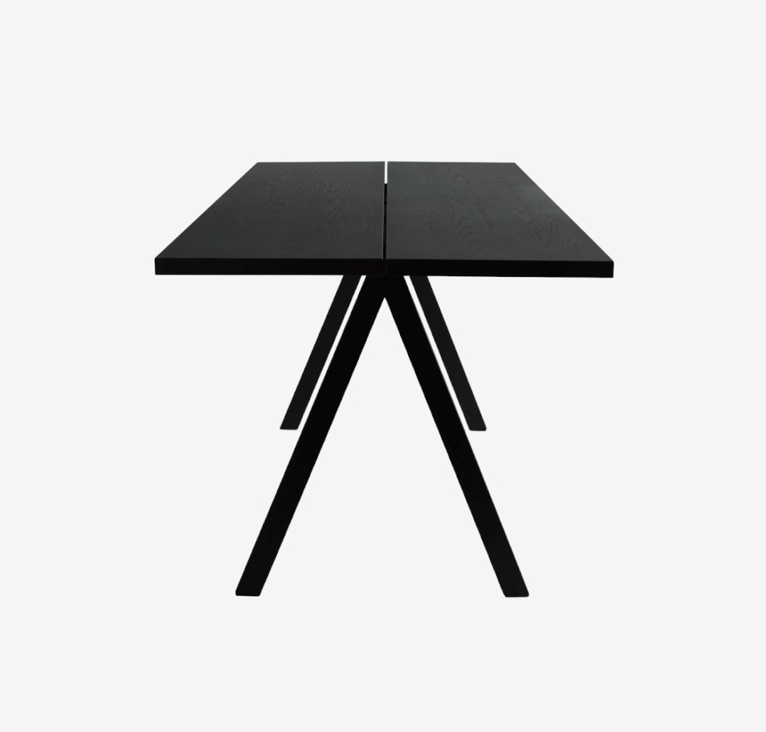 Столешница обеденного стола Saw Wood выполнена из шпона ясеня с обработанной воском сатиновой отделкой без растворителей в оттенке Black. Также столешница доступна в оттенке Smoked. Каркас металлический с порошковым покрытием в оттенке Black. Стол может быть сделан с индивидуальными размерами от 180 см в ширину и от 80 в глубину.