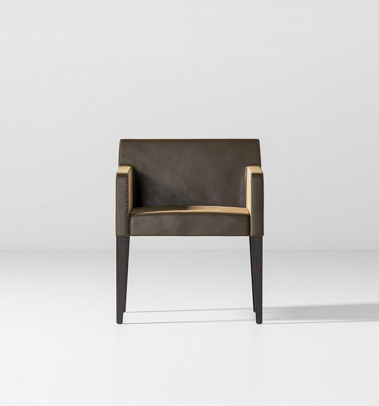 Обеденное кресло Modénature Pierre Dining Chair — модель для того, кто занимает главное место за столом. Его силуэт строится на строгих прямоугольных линиях и тонких длинных ножках. Низкая спинка и прямые подлокотники образуют четкий геометрический контур. Сиденье утоплено в массивный каркас. Конструкция выглядит монолитной и устойчивой.
